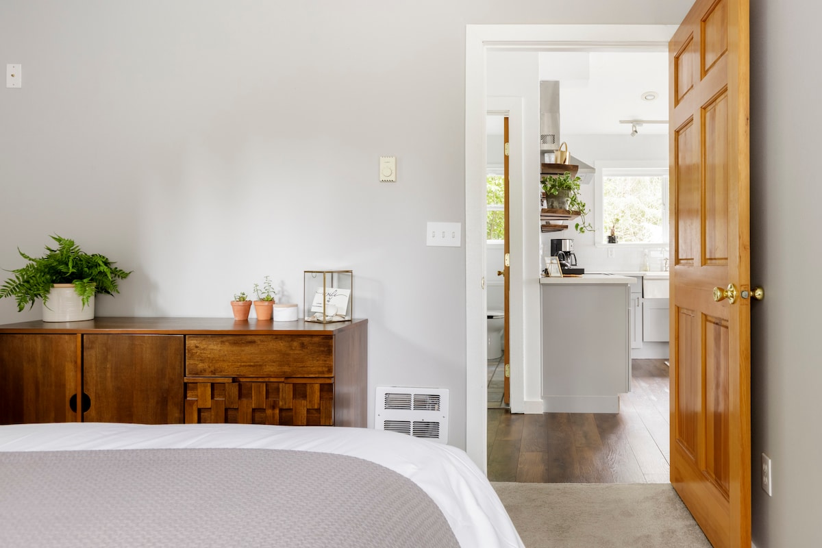 Gjestenes favoritt! Fredelig, privat studioleilighet bare noen skritt fra sentrum av Edmonds. Nyt en komfortabel queensize-seng, komplett kjøkken, raskt trådløst nettverk, privat inngang og dedikert parkering. Gå til kaféer, parker, stranden og fergen – eller ta toget en mil unna for enkel tilgang til Seattle, Lumen Field og til og med Vancouver. Et rolig tilfluktssted ved kysten med bekvemmelighetene i byen i nærheten!