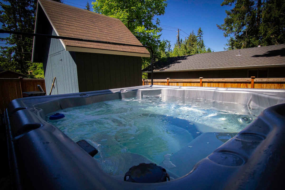 Velkommen! Vi befinner oss i et boligområde, i nærheten av mange restauranter og butikker, Lynnwood Convention Center, Alderwood Mall, I-5 og I-405, og bare to miles fra Lynnwood Light Rail-stasjonen for enkel tilgang til sentrum av Seattle, Bellevue og Everett. Stedet vårt er komfortabelt og koselig, med mye naturlig lys, uteplass som du kan nyte, og vi er nøye med detaljene. Vi ønsker alle velkommen - par, reiser alene, bedriftsreisende og eventyrere.