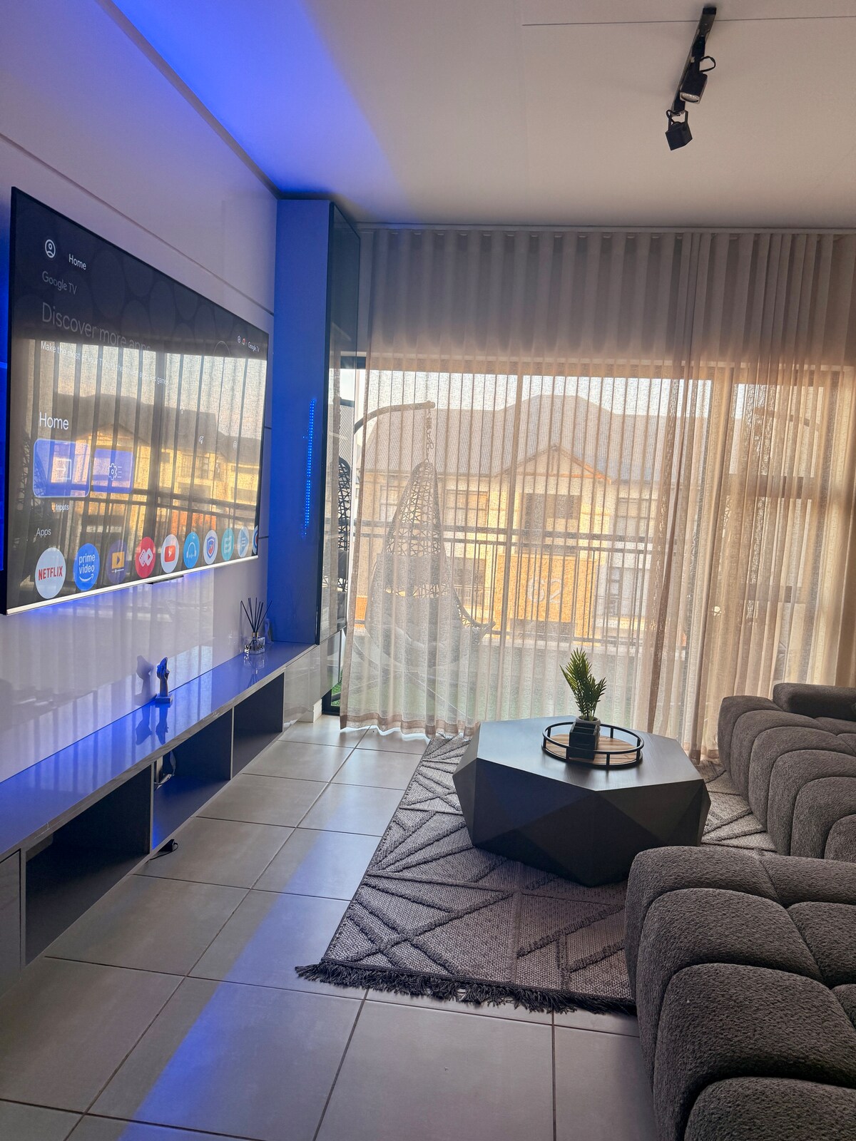 Nyt vår luksuriøse og moderne, selvbetjente leilighet, perfekt plassert i hjertet av Pretoria East. Dette stilige og elegante tilfluktsstedet tilbyr et trygt og sikkert miljø for oppholdet ditt, med svømmebasseng på taket og restaurant. Vi er i gangavstand fra Times Square Casino og Sun Bet Arena, samt alle de livlige Menlyn Maine-restaurantene.