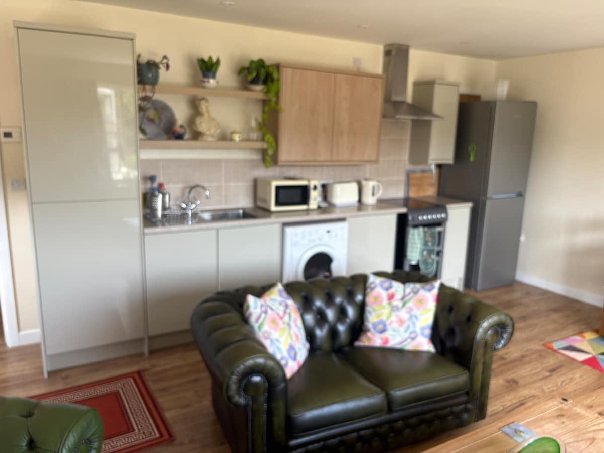 Velkommen til The Jinney Ring En vakkert ombygd ciderlåve som tilbyr selvbetjent overnatting for inntil tre gjester. Dette sjarmerende tilfluktsstedet ligger i hjertet av det landlige England, og er perfekt for dem som søker ro med et snev av rustikk eleganse. Med autentisk sjarm, bevarer den sin historiske karakter med originale bjelker, steinverk og en ciderpresse som er gjort om til en luksuriøs super kingsize-seng, alt supplert med moderne bekvemmeligheter.
