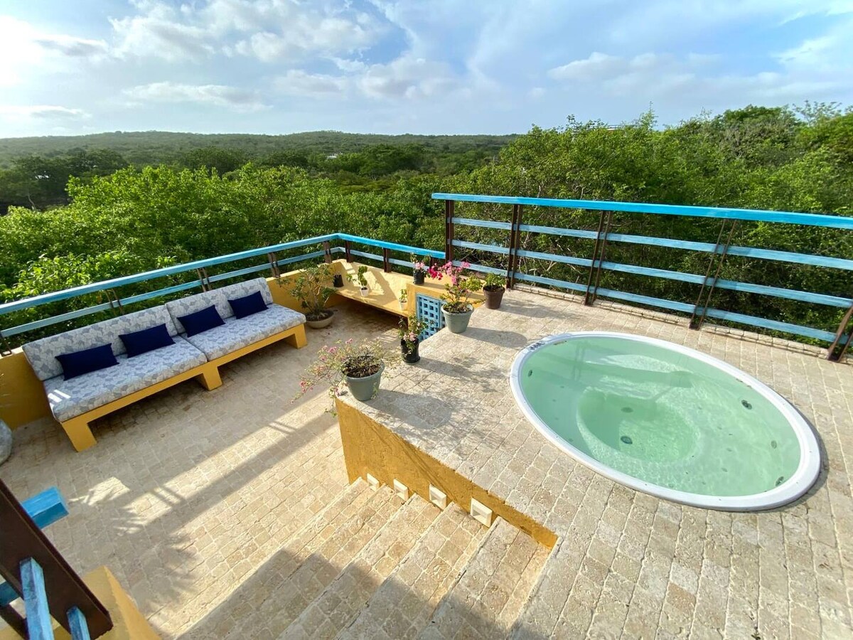 Koselig strandhus i nærheten av Cartagena, i et naturreservat og i nærheten av byen Rincon del Mar og nasjonalparken Corales-øyene. Vi inkluderer GRATIS: ★ Privat brygge og strand. ★ Kajakker og padlebrett ★ Buttler og hushjelp/kokk ★ høyhastighetsinternett ★ smart-TV ★ privat parkering ★ Solenergi VIDEOER: Du kan se videoene våre på YouTube. Søk etter «Caribbean Villa Cartagena».