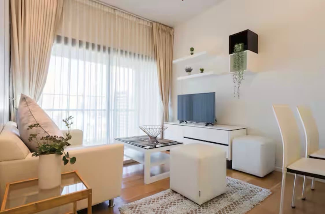 Velkommen til din luksuriøse urbane oase i hjertet av pulserende Bangkok! Dette fantastiske tilfluktsstedet ligger høyt oppe i et moderne høyhus og tilbyr uovertruffen utsikt over den travle byens skyline og frodige grønne parker. Enten du besøker Bangkok for forretninger eller fritid, tilbyr denne moderne leiligheten den perfekte blandingen av luksus, bekvemmelighet og fantastisk utsikt. Bestill oppholdet ditt i dag og opplev det beste denne dynamiske byen har å by på!