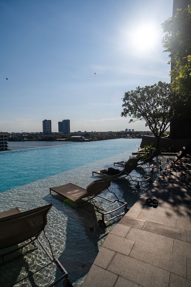 En spektakulær, koselig leilighet ved siden av Chao Phraya-elven, en svært høy etasje med utsikt over Bangkoks skyline fra sengen og terrassen. Det kommer mye sollys inn i rommet gjennom dagen med mye energi og god stemning. Fasiliteter med opptil tre enorme svømmebassenger med signaturen infinity sky pool i 56. etasje med fantastisk utsikt over elven og solnedgangen. Det er et klubbhus med spillrom, arbeidsplass foran elven samt 360 graders utsikt over Bangkok.