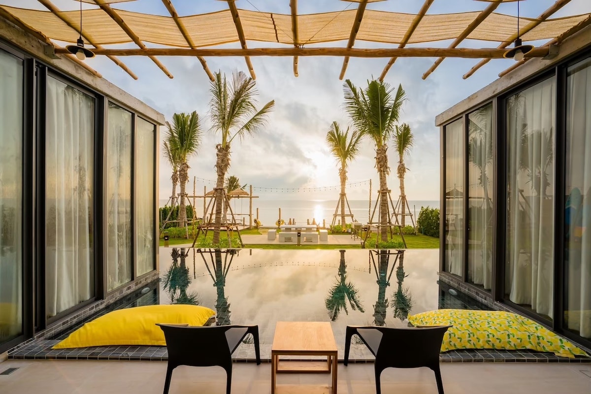 Feriehus ved siden av havet, med svømmebasseng, kan bo opptil 8 til 12 personer. Tre soverom, fire bad, utendørs badekar. Turen fra huset til stranden tar bare ett minutt. Utsikten over huset har utsikt over sjøen. Ved siden av en privat strand. Stille og fredelig. Perfekt for avslapning.