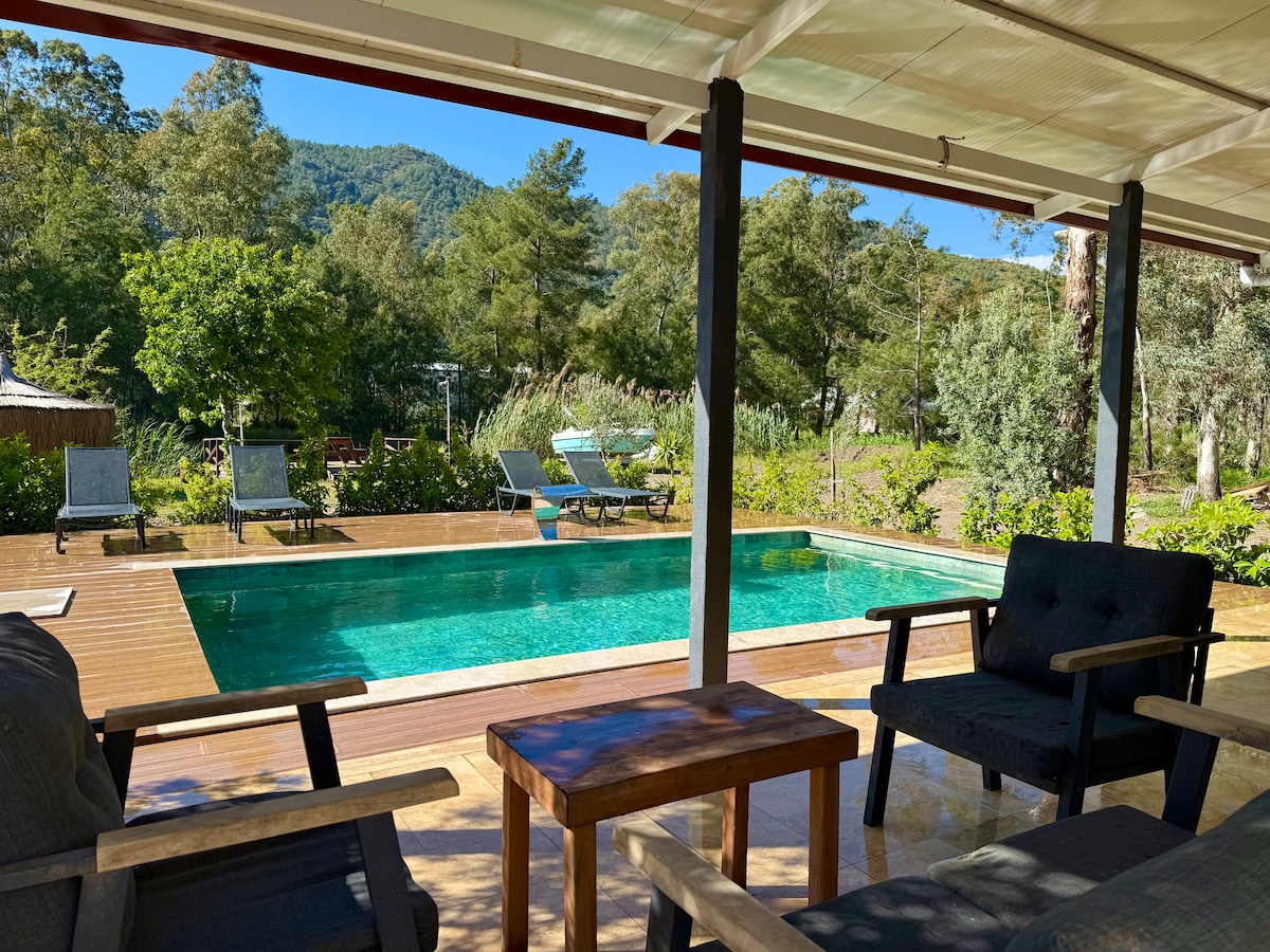 Vår trevilla med privat basseng (med varmt basseng om vinteren) i Hisarönü, Marmaris, lar deg ha en rolig ferie med hage og basseng. Det gir enkel tilgang til stranden på 5 minutter med bil, buktene Marmaris på en halvtime og Marmaris på 15 minutter. Du kan dra nytte av økologisk frukt og grønnsaker i hagen vår og skape hyggelige minner med familie og venner ved å bruke grillen vår. @alibabahomess