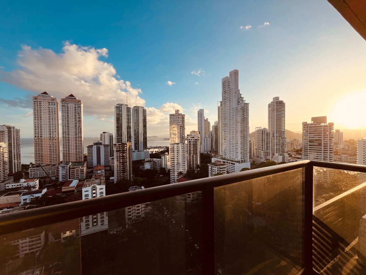 Velkommen til leiligheten vår! Vi er glade for at du valgte Panama for besøket ditt. Leiligheten vår ligger i det mest pulserende området i byen, med rask tilgang til de beste restaurantene og barene, og i et trygt område i nærheten av supermarkeder og apoteker. Det ligger også i nærheten av populære steder som Omar Torrijos Park, Multiplaza og Pacific Center kjøpesentre, bankområdet og de beste sykehusene (Punta Pacifica Hospital og Pacifica Salud).