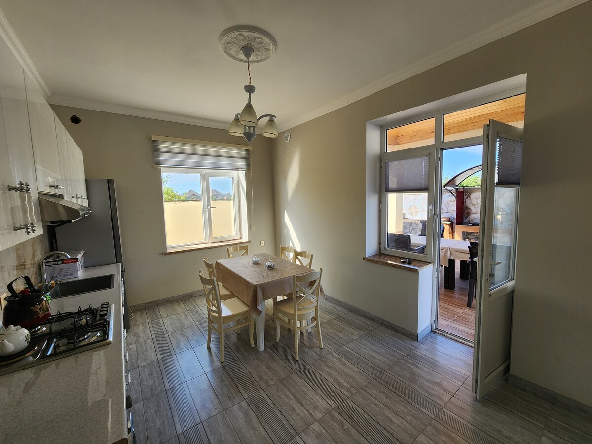 Escape to our cozy cottage in the heart of Quba, surrounded by fresh mountain air and beautiful nature. The house has a private yard with fruit trees, a BBQ grill, and a patio where you can enjoy your morning tea. Perfect for families and groups, it offers peace and comfort away from the city noise. Only a short drive from Quba city center and close to famous attractions like Afurja Waterfall (Khinalig) and Shahdag Resort. An ideal place to relax, recharge, and create unforgettable memories.