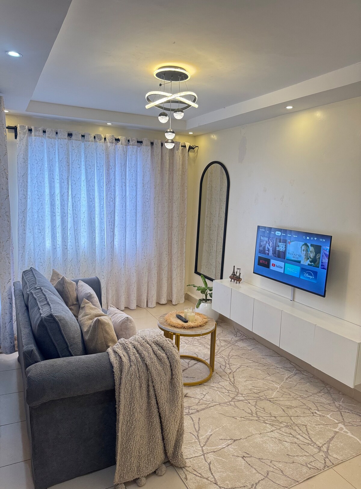 M0 M7 M2 M8 M0 M2 M3 M2 M8 M8. Dette er en eksklusiv, moderne og veldig stilig stilig, fullt møblert leilighet med ett soverom, sikkerhet døgnet rundt, smart-TV, superraskt trådløst nettverk, Netflix og et fullt utstyrt kjøkken. Den er ren, praktisk og har et vakkert fargevalg med smakfull innredning. Det er ti minutters gange til Naivas-supermarkedet, åtte minutter til Chicken Inn og Pizza Inn, 15 minutter til Quickmart, KFC, V-spot club og to minutter til Night Fall Park. Det er en perfekt, elegant og likevel koselig ferie. Ideell for hvile, arbeid eller ferie.