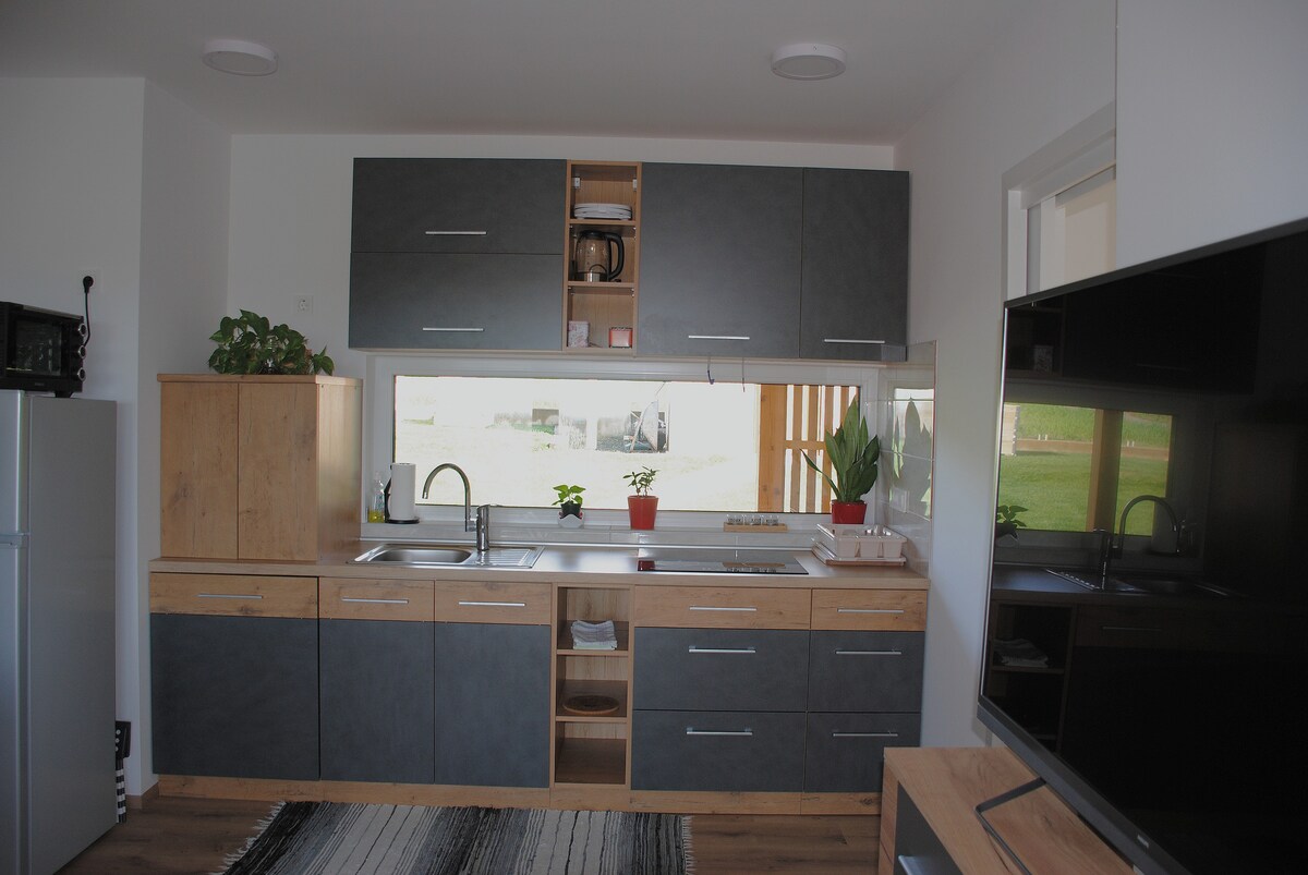 Et hus på landet. Foran huset er det en overbygd terrasse. Hagen tilbyr et sted å slappe av, en lekeplass, en zipline, en bålplass og en grill. I hagen kan du plukke friske grønnsaker og høste frukt rett fra trærne. Dette er et ekte paradis for syklister, turgåere, soppforhandlere og sportsfiskere. For avslapning, nyt det termiske vannet og spennende vannsklier på Terme 3000, eller besøk adrenalinparken. Gratis sykkelutleie er tilgjengelig!