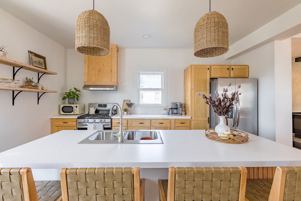 La Casita er et familievennlig, fullt ombygd hjem med tre soverom/2 bad. Vi ligger innenfor tre minutter med bil til det historiske sentrum i Muscatine. Kjøkkenet er fullt utstyrt, og hjemmet har en kingsize-seng, en queensize-seng og en enkeltseng til bruk (en barneseng er tilgjengelig hvis du ber om det). Andre funksjoner inkluderer fullt badekar/dusj på hvert bad, vaskemaskin og tørketrommel i full størrelse, røyk-/karbonmonoksidvarslere, innsjekking uten nøkkel, trådløst nettverk, smart-TV og et lukket privat bakgårdsområde.