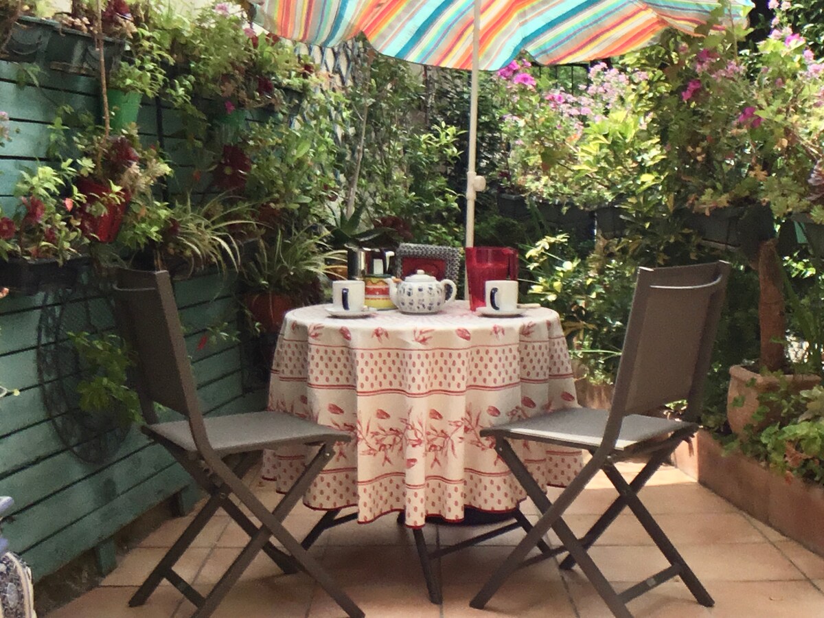 Nyt den romantiske terrassen til fuglene våre, en rolig og sjarmerende eiendom i andre etasje (USA) i en nylig renovert historisk bygning med utsikt over en gammel kirke i gamlebyen. Utforsk Riviera med et enestående nettverk av kollektivtransport i nærheten (trikk, buss, elsykler). Kom deg raskt til sjøen og La Promenade for en lat dag på stranden eller en romantisk spasertur langs vannet.