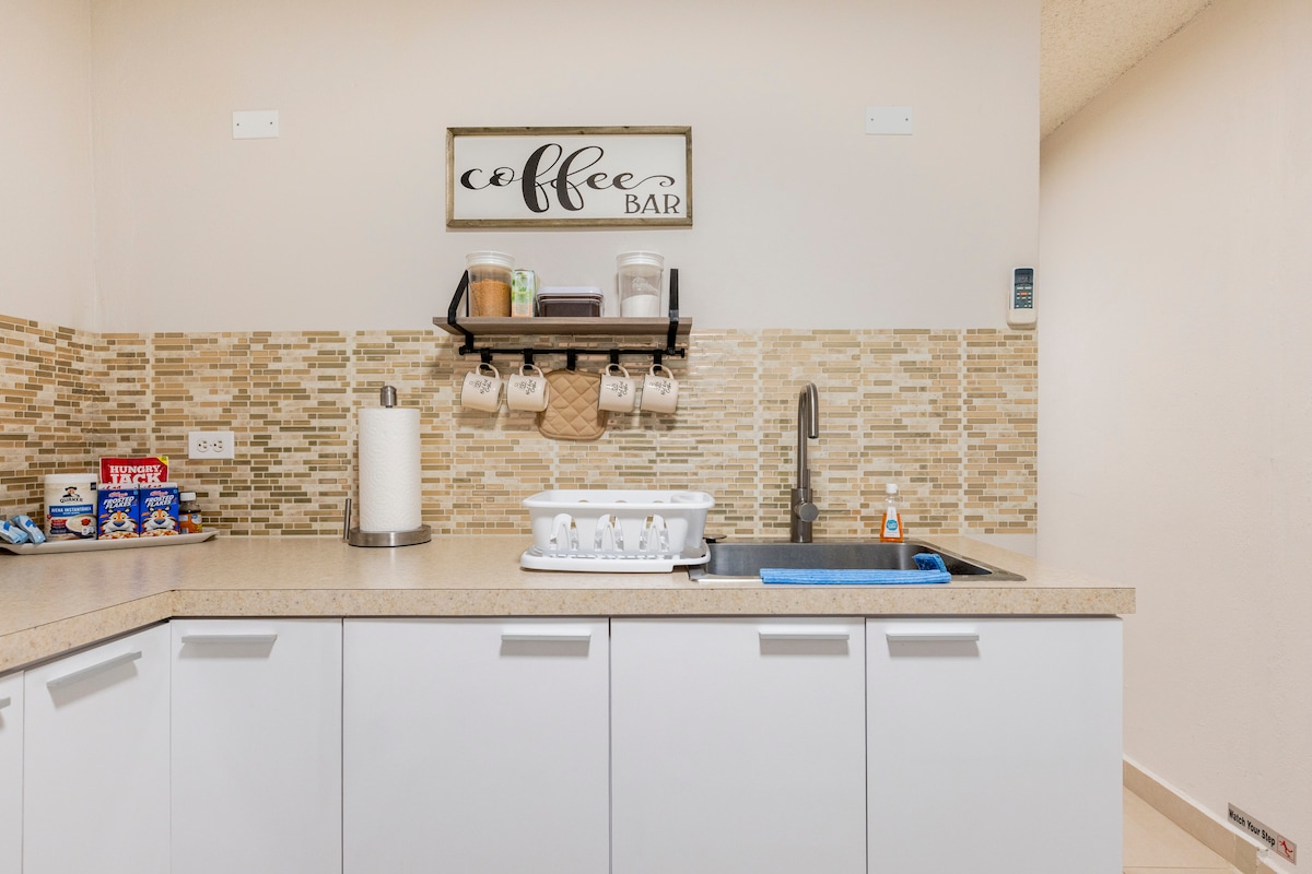 Nyt en stilig opplevelse i denne sentralt beliggende leiligheten. Bare noen få minutter unna alle de viktige landemerkene (kjøpesentre, sykehus, restauranter) og alle de store motorveiene som tar deg til hvor du vil i Ponce. Kom deg til La Guancha på 10 minutter og nyt lokal mat, en spasertur på stranden og utendørsaktiviteter. Kjør 7 minutter til sentrum av Ponce, og nyt vakker arkitektur som katedralen og Parque de Bombas.