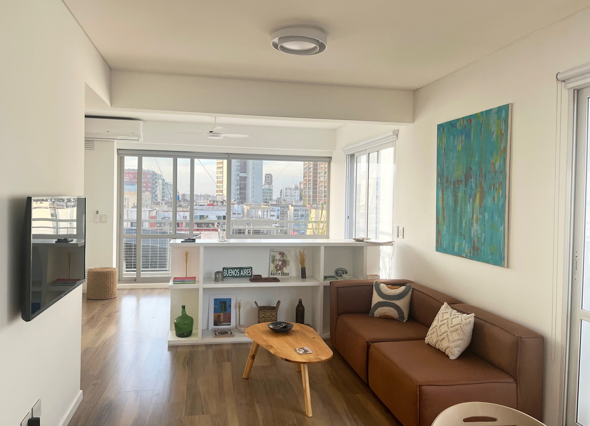 En moderne og lys leilighet i Palermo Chico. To soverom (queensize-seng og køyeseng), ett fullt bad + toalett, utstyrt kjøkken, balkong og sengetøy inkludert. Klimaanlegg, trådløst nettverk, TV med Netflix, vaskemaskin. Sikkerhet døgnet rundt. Innsjekking kl. 13.00, utsjekking før kl. 11.00, men begge er fleksible og autonome. — Moderne og lys leilighet i Palermo Chico. To soverom, komplett kjøkken, balkong, trådløst nettverk, aircondition, Netflix. Sikkerhet døgnet rundt. Fleksibel og innsjekking uten vert kl. 13.00, utsjekking før kl. 11.00.