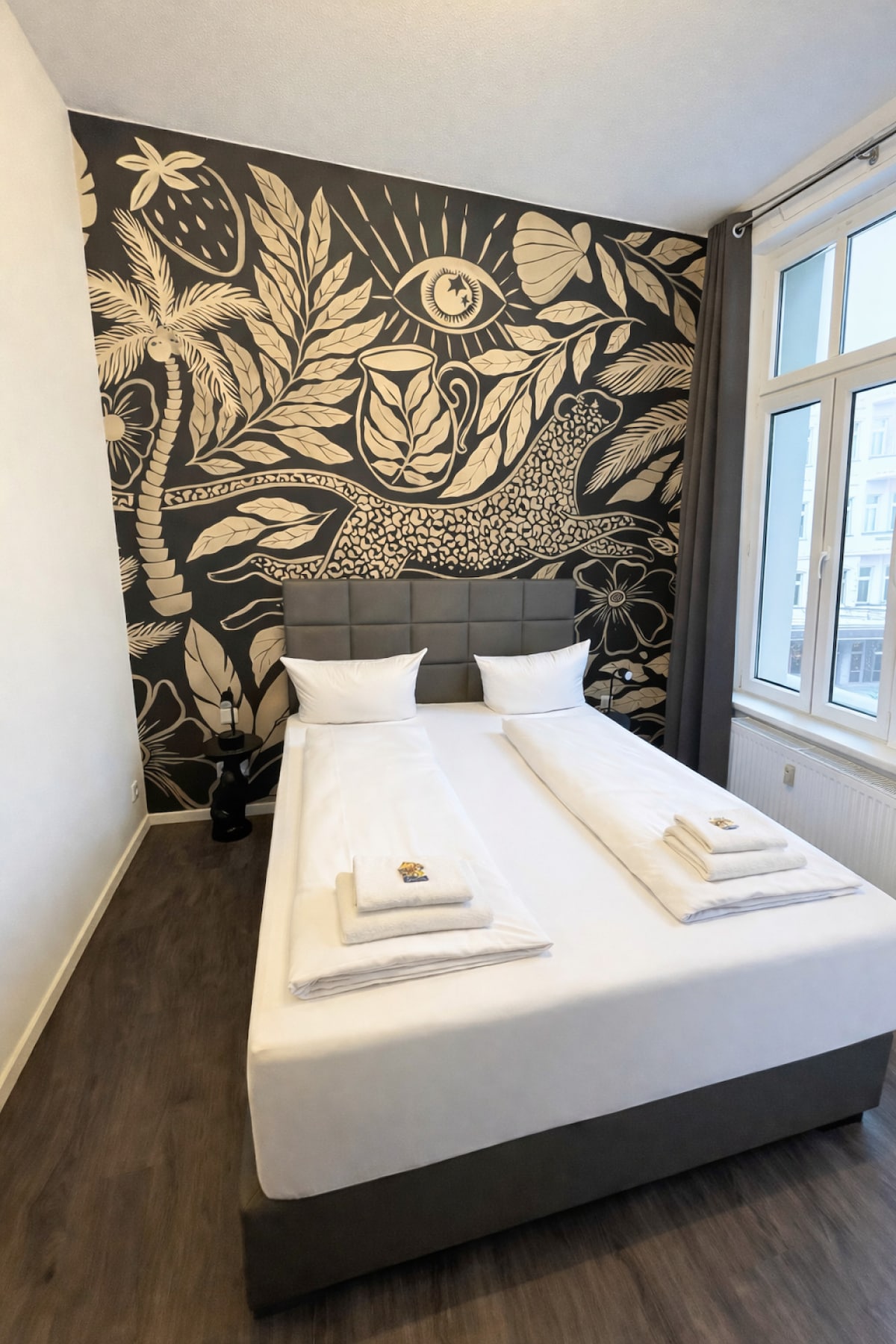 Dette moderne, luksuriøse rommet har ett soverom på tvers av 22 kvm plass. Ideell for opptil to personer, med king-size-seng og moderne dusj gjør dette oppholdet til en perfekt måte å oppleve Berlin på. Rommet tilbyr også bærekraftig kaffe, vannkoker og et minikjøleskap, så du har alt du trenger for maksimal komfort og minimal stress.