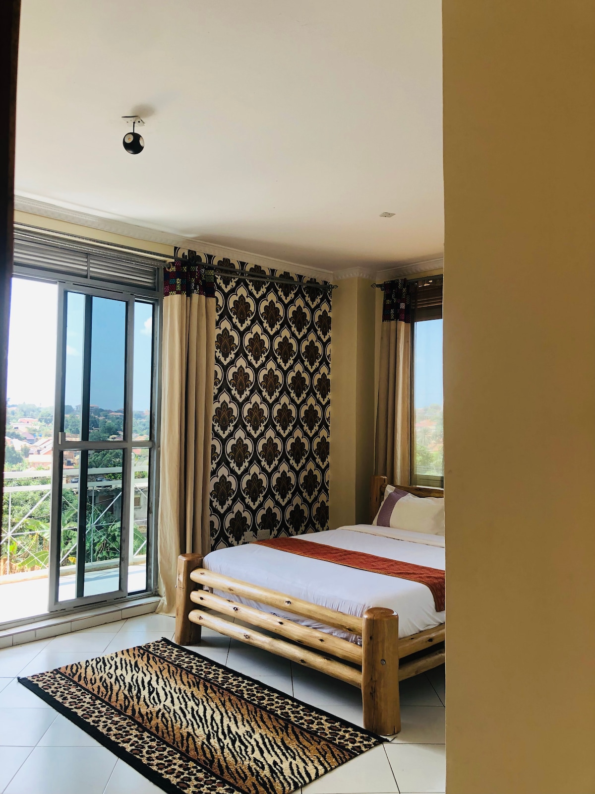 Denne romslige suiten ligger i hjertet av Kampala, bare seks minutters gange fra det sentrale forretningsdistriktet, og er større enn de fleste leilighetene i bysentrum. Klimaanlegget har et soverom med eget toalett, utvidet stue, familietoalett og balkong med utsikt over Kampala by. De fleste attraksjoner i Kampala, populære barer, selskaper er svært tilgjengelige herfra. RASKT trådløst nettverk, basseng, restaurant, bar, daglig rengjøringstjeneste, varmtvann døgnet rundt er tilgjengelig.
