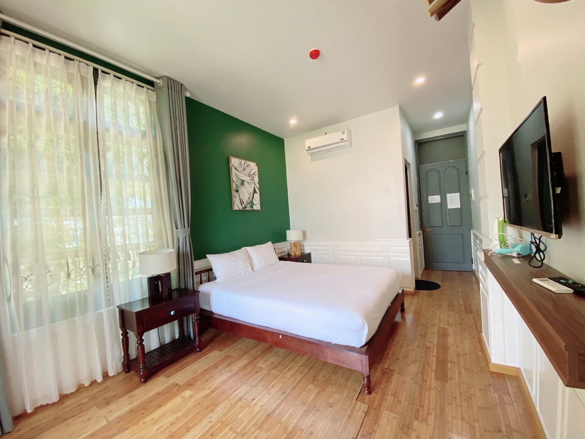 ★THI BOUTIQUE VILLA ER EN STILLE OG KOSELIG VILLA – DEN LIGGER I NÆRHETEN AV HOVEDSTRANDEN I DANANG BY. Dette romantiske rommet ligger i andre etasje, noe som er egnet for par som ønsker å nyte privatliv. Du kan ta med drikke eller mat til terrassen i tredje etasje, hvor det er mange bord og stoler for å nyte og drikke om kvelden med lysdekorasjon over hodet. Tro meg, for denne atmosfæren vil gi deg en komfortabel følelse.
