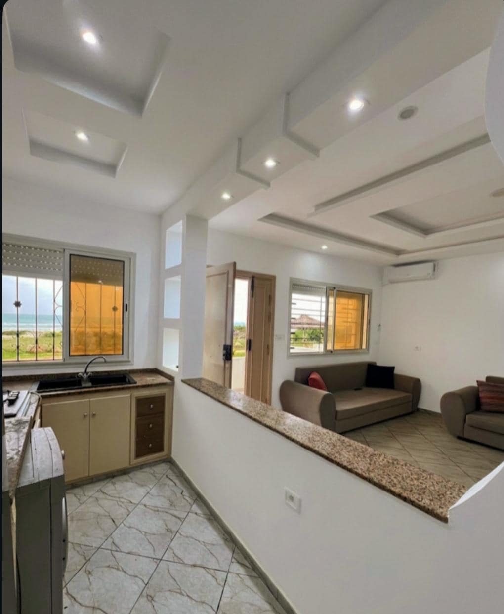Villa S+2 med aircondition i Haouaria med master suite, som ligger i nærheten av dammen i et fredelig og avslappende miljø. Huset ligger i nærheten av stranden, litt utenfor sentrum, ideelt for en ferie vekk fra hverdagens stress, og det tilbyr panoramautsikt over fjellet, som inviterer deg til å slappe av og koble fra. Et perfekt sted for de som elsker åpne områder, utendørs turgåing og aktiviteter ved sjøen.