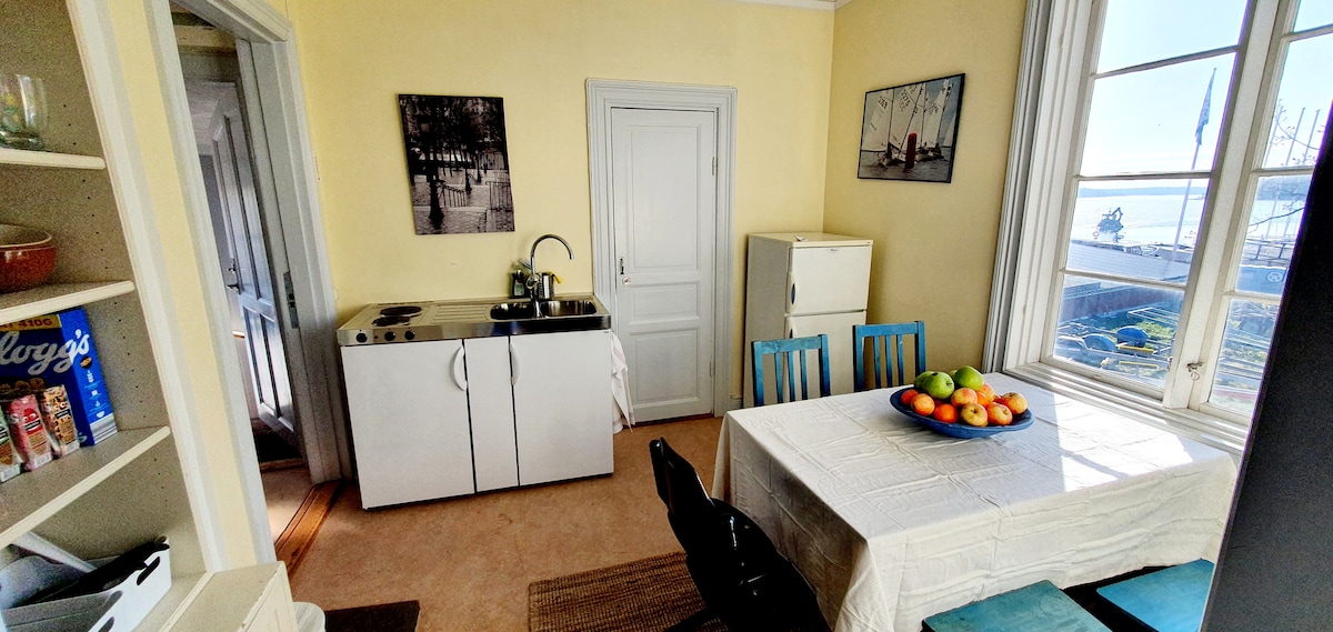 Sjarmerende hus (separat hus med egen inngang) med havutsikt i det vakre området Saltsjö-Duvnäs, bare 20 minutter fra Stockholm sentrum med lokalbussen. Gjestehuset har en romantisk setting og er innredet i landlig stil. Ett soverom med dobbeltseng og kjøkken med en ekstra seng. Spisebord med plass til fire personer. Nede er det et bad. Passer for en liten familie med 1–2 barn. Vi har to kajakker å låne ut gratis, og det er mulig å leie en liten motorbåt.