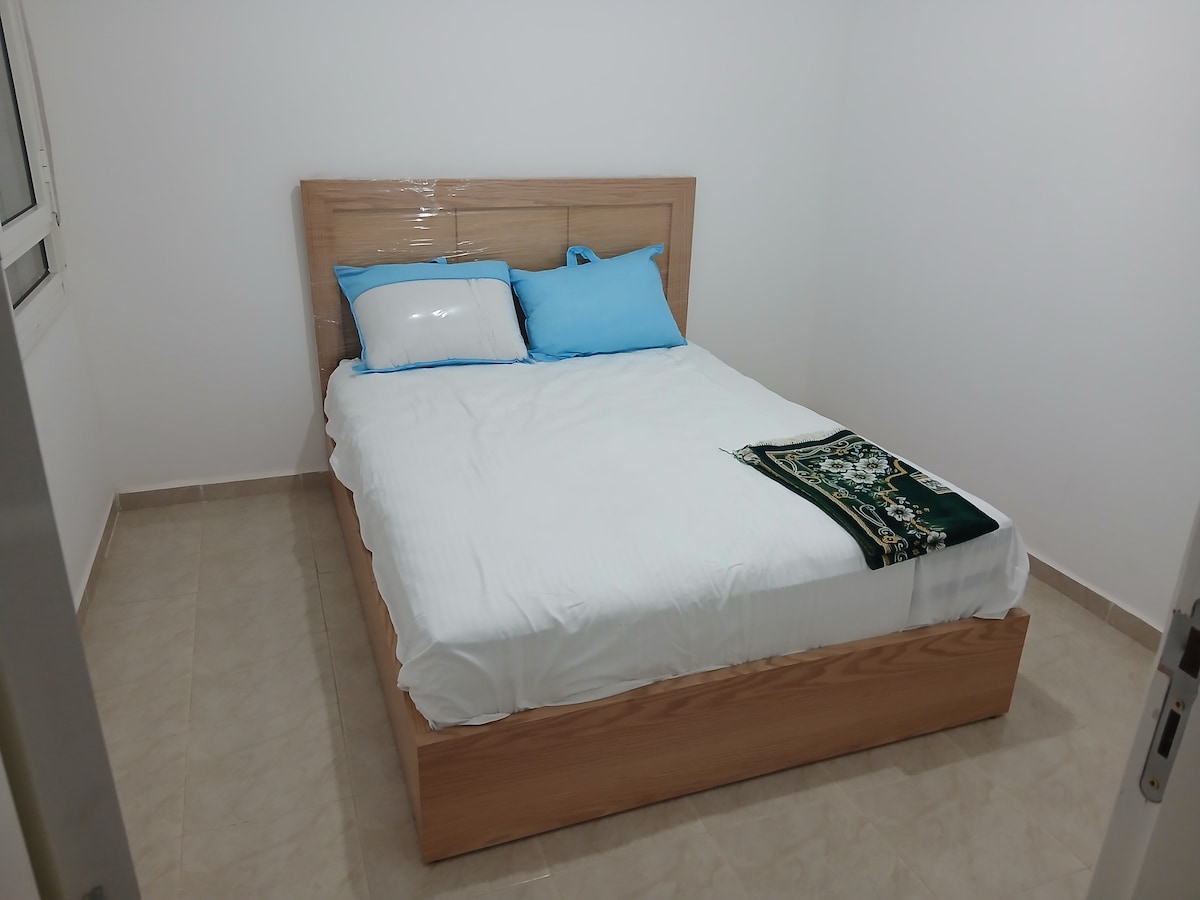 Velkommen til familiehjemmet ditt i Nador! Denne romslige leiligheten er designet med komfort, plass og privatliv i tankene. Det er ideelt for familier eller grupper på opptil seks personer, og tilbyr et varmt, moderne og fullt utstyrt miljø for å hjelpe deg med å nyte oppholdet til det fulle. Førsteklasses beliggenhet: • Bare syv minutter med bil fra den vakre Marchica Lagoon (lett tilgjengelig med taxi). • Bare ti minutters gange fra den tradisjonelle Oulad Mimoun-souken • Bare fem minutters gange fra Clinique Al Wahda.