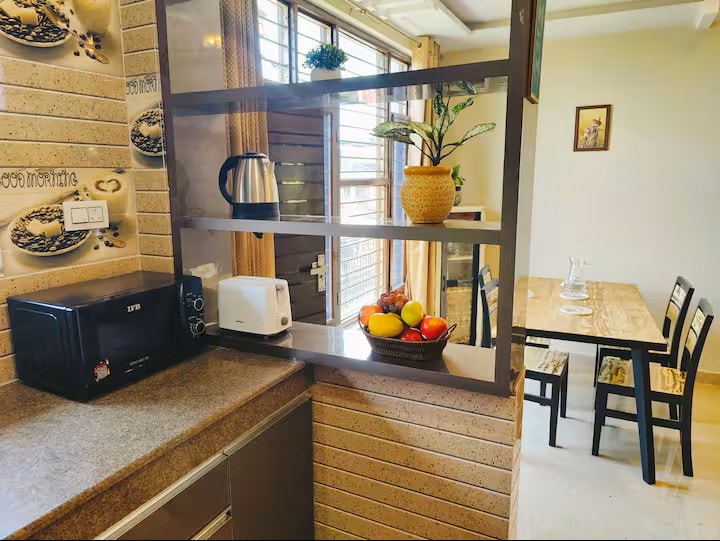 Nyt rustikk sjarm og moderne eleganse med naturlige treaksenter og jordnære toner, noe som skaper en koselig atmosfære, i hjertet av Dharamshala. ✨ Hva gjør hjemmet vårt spesielt Nyt fantastisk utsikt over Dhauladhar-fjellet fra hagen vår. Den frodige hagen vår, fylt med blomster og frukttrær, er perfekt for å slappe av eller drikke morgenkaffen. Det lokale markedet, HPCA Stadium, tehagene og andre attraksjoner ligger innenfor 5 km, noe som gjør sightseeing og shopping enkelt
