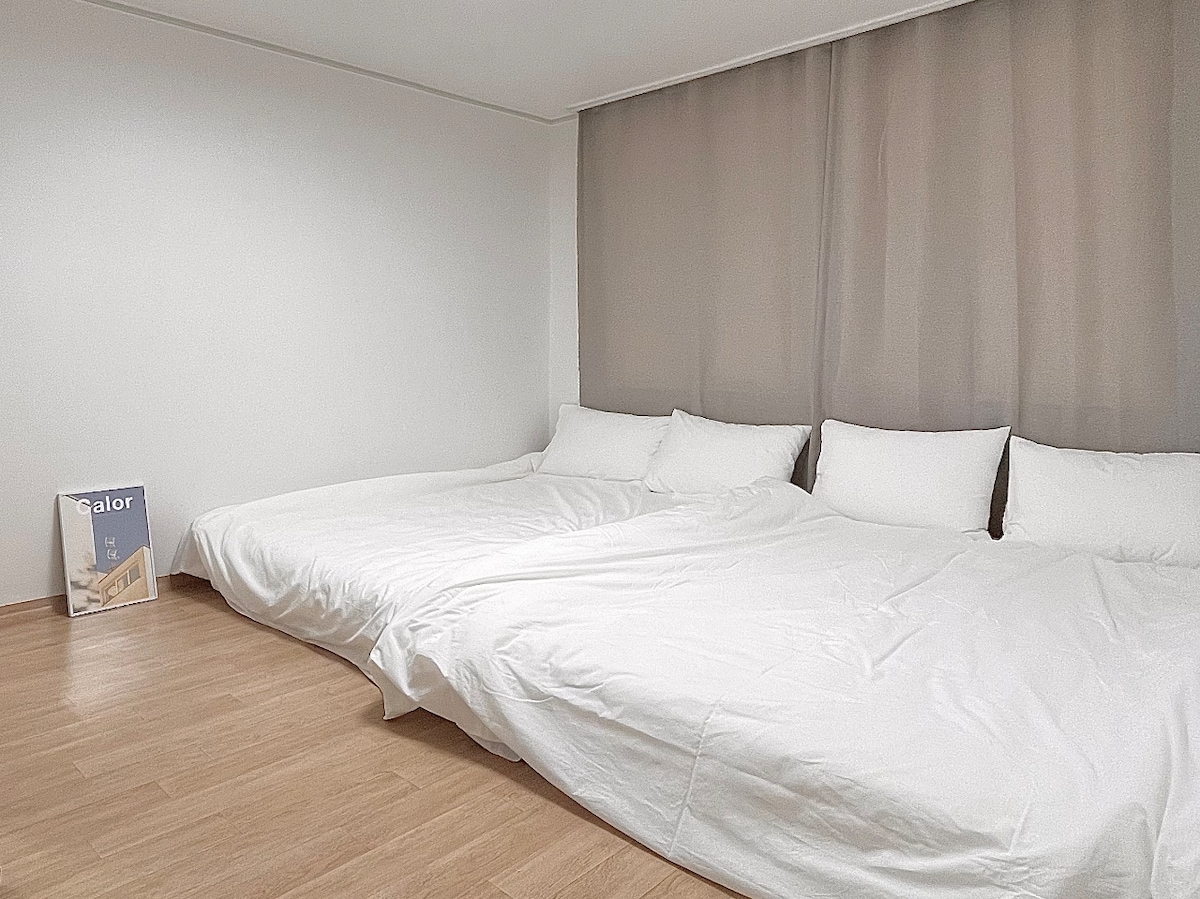 Olivengrønn. Ikke bare en form for overnatting, men vår egen smak Det har et bilde av et rom som er fylt. Vi har tenkt på og jobbet med dette stedet, og vi håper at det kan bli et lite fristed for alle som kommer hit. Vi håper at dette er et lite fristed i Gwangalli hvor du kan finne litt trøst. • Standard for 2 personer, opptil 3 personer er mulig. • Innsjekking kl. 15.00, utsjekking kl. 11.00 • Fasiliteter Hårføner, sjampo, balsam, dusjsåpe • Media og andre fasiliteter 32-tommers TV, WIFI, trommelvaskemaskin, klimaanlegg • Fasiliteter for måltider Spisebord for 3 personer, kjøleskap, mikrobølgeovn, vannkoker, servise, bestikksett (4 personer), kjøkkenutstyr, salt, urtesalt, krydder, sukker • Parkering er ikke mulig, men du kan parkere i bakgaten foran huset. Vennligst merk ^^ Det er en privat parkeringsplass i nærheten. Kontakt oss hvis du trenger veiledning ^^ • Dette er en rolig og komfortabel hvileplass med lite støy, 3. etasje i et eneboligområde.