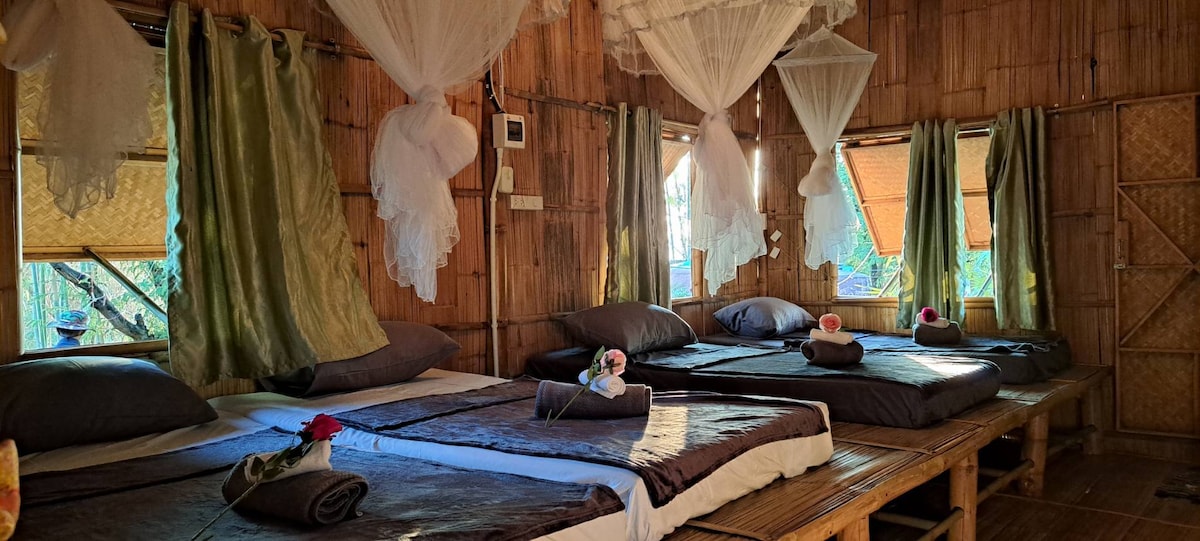 A peaceful hideaway where simplicity meets nature. Thoughtfully built using bamboo and natural earth, blending harmoniously with the surrounding environment, beside the mountains and surrounded by farmland and lush greenery life. Refreshing swimming pool for your relaxation. On-site café ,adding a truly authentic farm-to-table experience to your stay. For adventure lovers, we offer ATV rentals, allowing you to explore the natural trails and scenic landscapes around the property