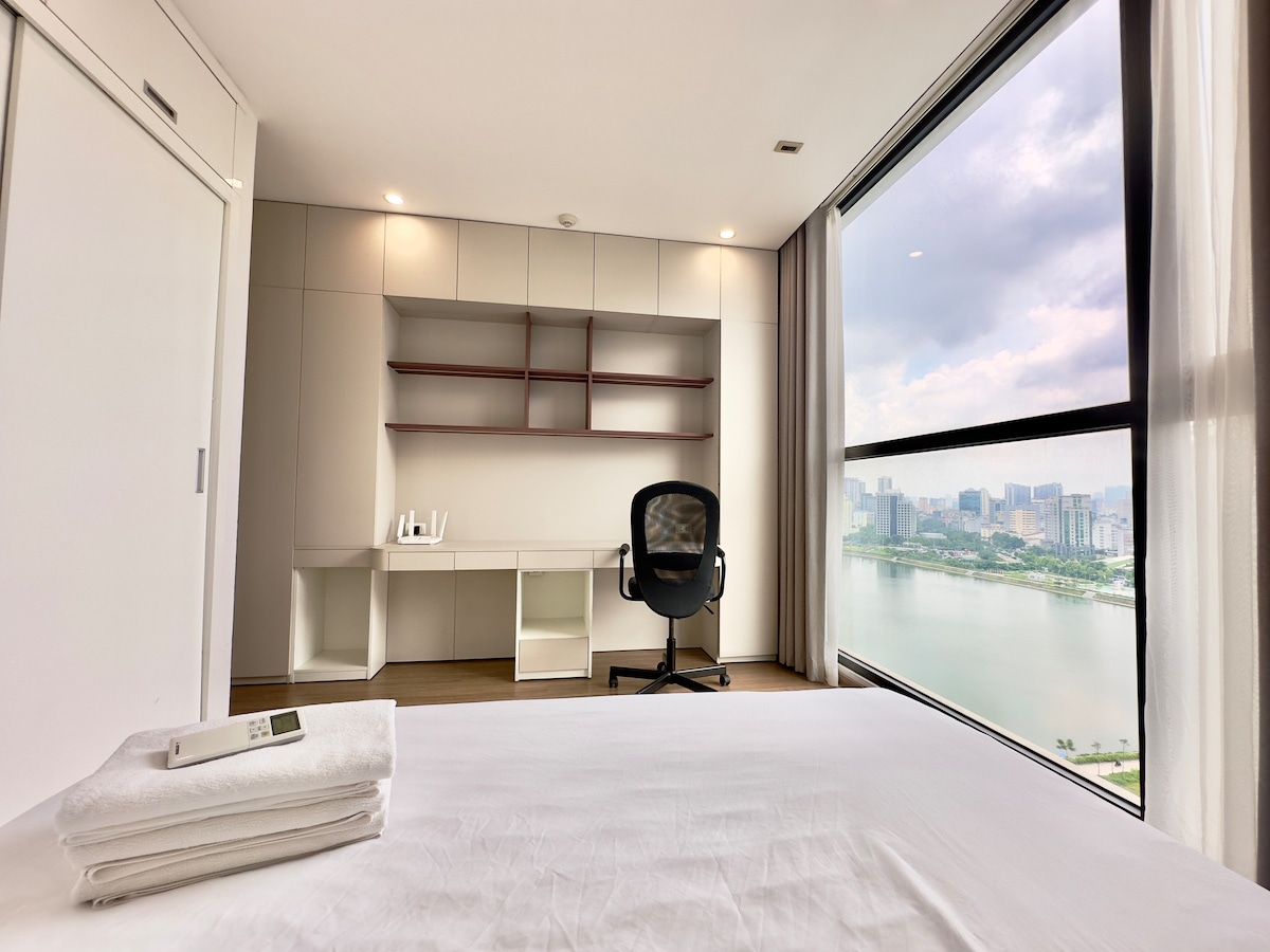 ◈ Kjeden av moderne leiligheter ligger i Hanois luksuriøse leilighetskomplekser. Vinhomes D'Capitale er et av de beste stedene å bo i Hanoi. Hver leilighet er smakfullt dekorert, skinnende ren og har flott utsikt over byen, utsikt over innsjøen fra de beste etasjene. Vi tilbyr perfekt overnatting for par, familier, forretningsreisende eller enslige reisende. ◈ Denne splitter nye leiligheten har to soverom med fjærmadrasser, ett privat bad, stue med komfortabel sofa for å slappe av med en smart-TV.
