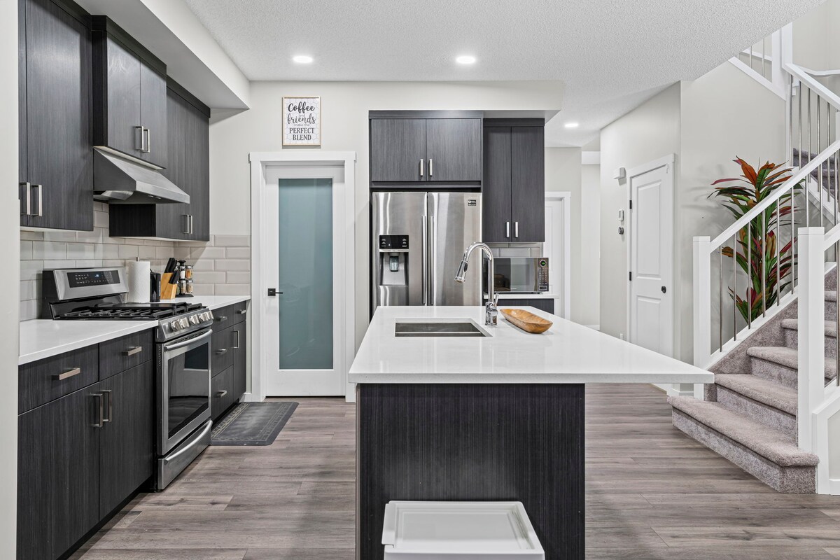Rustic/modern decor with charm. Cozy master bedroom with king size bed and Smart TV. Two additional bedrooms with queen size beds. Perfect for families! ✧ 1400 sq ft ✧ 8 minutes to downtown core/ICE District ✧ Fully fenced yard with water feature & hot tub ✧ Parking for two + street parking ✧ Smart TV’s/Cable ✧ Keyless entry ✧ Tim Horton’s coffee grounds provided