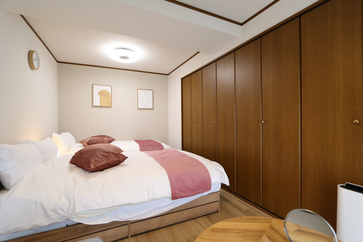 Charming, newly renovated- TWIN-bedroom apartment just 2 minutes from JR Namba Station - Dotombori (8 minutes): Neon lights and street food await. - Shinsaibashi (12 minutes): Shopping and dining at a renowned district. - Namba Yasaka Shrine (10 minutes): Iconic lion-shaped stage for history buffs. - Kuromon Market (10 minutes): Fresh seafood and local delicacies. - Amerikamura (15 minutes): Trendy fashion and cozy cafes. - OCAT (2 minutes): A transit hub for easy city exploration.