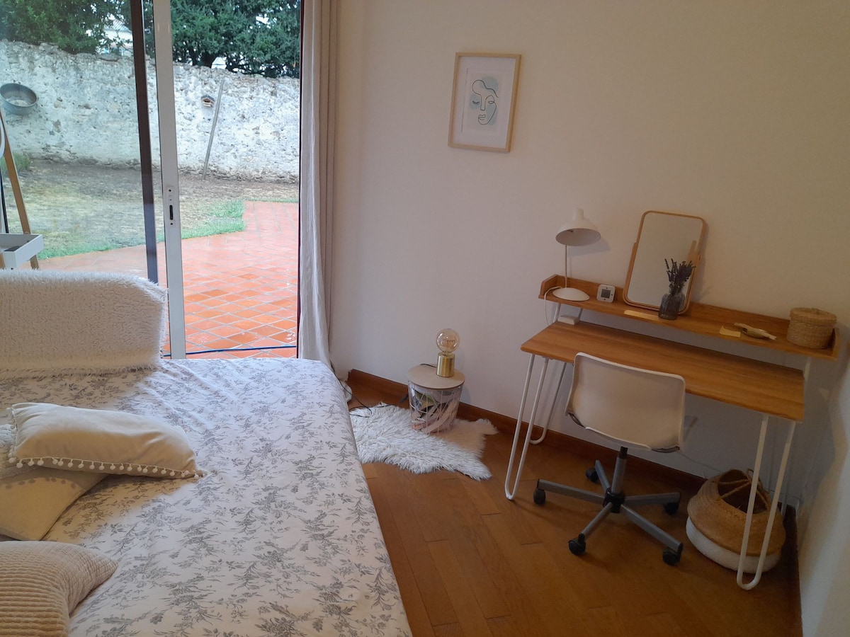 Fem minutter fra flyplassen med bil og 40 minutter til fots. Du kan hvile i en seng på 160 x 200 mens du venter på flyet ditt eller kommer tilbake eller begge deler. Frokost inkludert take away avhengig av utsjekkingstidspunktet. Du kan sette igjen kjøretøyet ditt på parkeringsplassen vår for 45 euro i uken under oppholdet. Utlån av en paraply for 5 euro. Jeg kan lage en middag til deg for 15 € per person, ellers står kjøkkenet til din disposisjon. Tilleggstjenester som skal betales på stedet