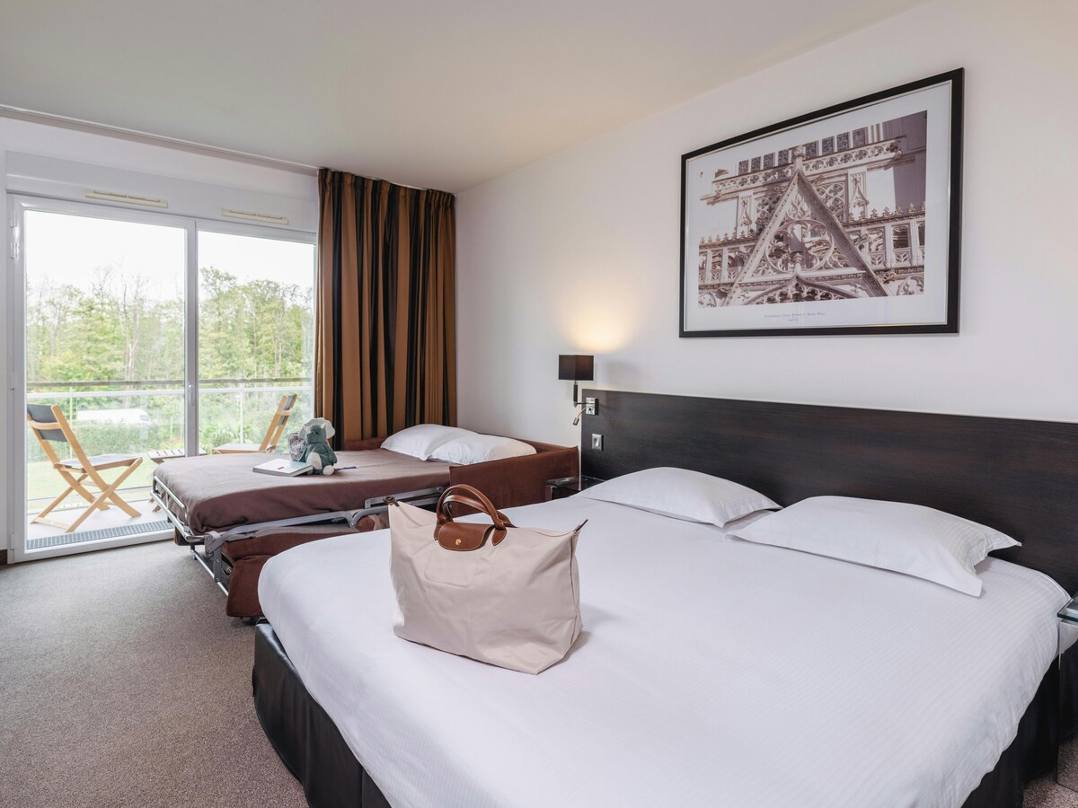 Vår 4-stjerners eiendom har en ideell beliggenhet ved bredden av Erdre, hotellet tilbyr fantastisk utsikt over Château de la Gascherie. Det er bare 20 minutter fra Nantes sentrum, og 10 minutter fra Stade de la Beaujoire samt Nantes utstillingssenter. Våre klassiske rom har en palett av myke farger. Tilstøtende rom for familier og rom dedikert til funksjonshemmede er tilgjengelige på forespørsel.