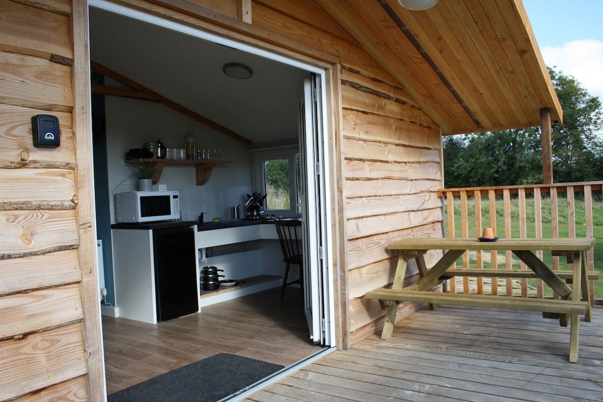 Vår håndlagde trehytte med eget bad ligger i en liten skog på en saugård med uavbrutt utsikt over dalen i pittoreske Shropshire. Den har alt du trenger for å trekke deg tilbake fra den virkelige verden, enten det er for en hyggelig kveld inne, foran vedovnen eller en sjanse til å sitte og se på stjernene på terrassen. Det er en overflod av turmuligheter rett utenfor døren din, og du er til og med så heldig å ha Offas Dyke innenfor et steinkast fra hytta.