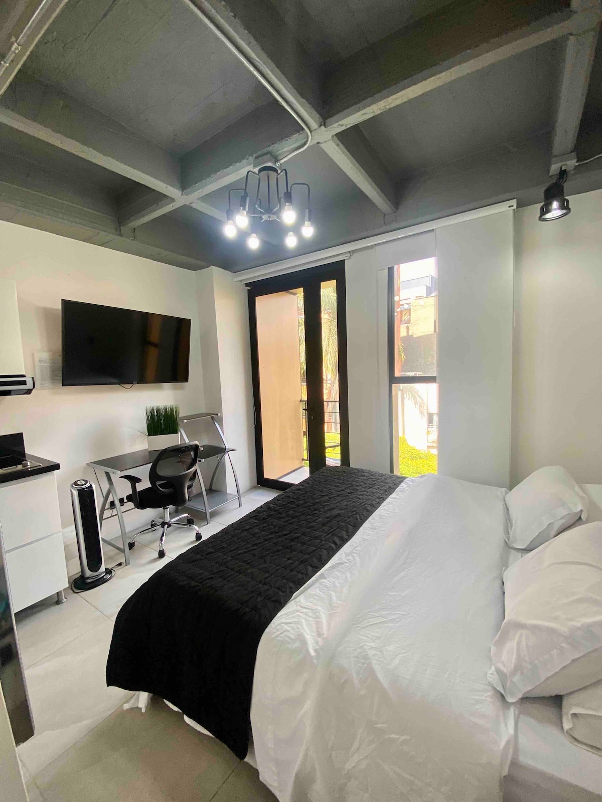 Koselig og funksjonell loftsleilighet med vaskemaskin, stekeovn, mikrobølgeovn, klimaanlegg, smart-TV og komplett bad. Den åpne planløsningen gir et stilig og praktisk sted, perfekt for lengre opphold eller komfortable ferier. Ligger ved siden av Atanasio Girardot stadion, med enkel tilgang til T-banen og lokale butikker. Perfekt for reisende som søker stil, bekvemmelighet og uavhengighet i Medellín.