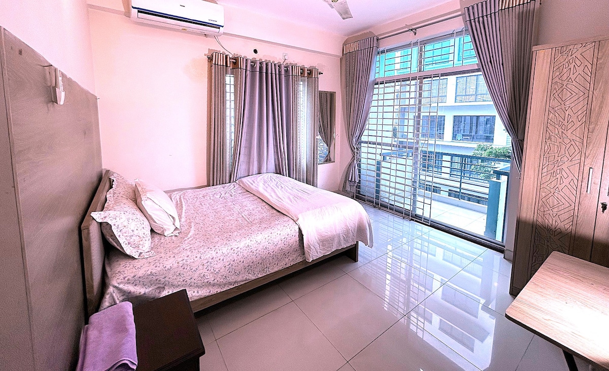 Dette er godt opplyst og nyoppusset stor leilighet. Det er så nær store VIP-områder som flyplass, Diplomatic Zone, Banani og Gulshan. Godt vedlikeholdt rengjøringssystem . Den er innredet med tre deluxe-senger i tre rom, klimaanlegg på alle rom, smart-TV med trådløst nettverk, kjøleskap, mikrobølgeovn, vannrenser, trådløst nettverk med høy hastighet døgnet rundt, sofaer, leseområde, matlagingsutstyr, sengetøy, håndklær, tepper osv.
