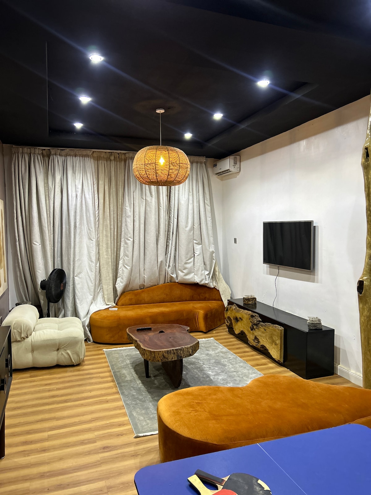 Royalty Luxury Serviced Apartment ble konseptabelt og designet som et hjem for Royals. Det er stille, unikt, stilig og hjemmekoselig med utsøkte møbler for å gi en følelse av et komfortabelt hjem. Ligger i en rolig, sikret inngjerdet eiendom og tilbyr praktisk tilgang til hele Abuja og dens omgivelser. 247 strøm med sol-/vekselretter-systemer, fiberoptisk trådløst nettverk, vifte, fullt utstyrt moderne kjøkken, bevæpnet sikkerhet, rolig nabolag. Standard biljardbord, avslapningsgynge, privat svømmebasseng og vaskemaskin.