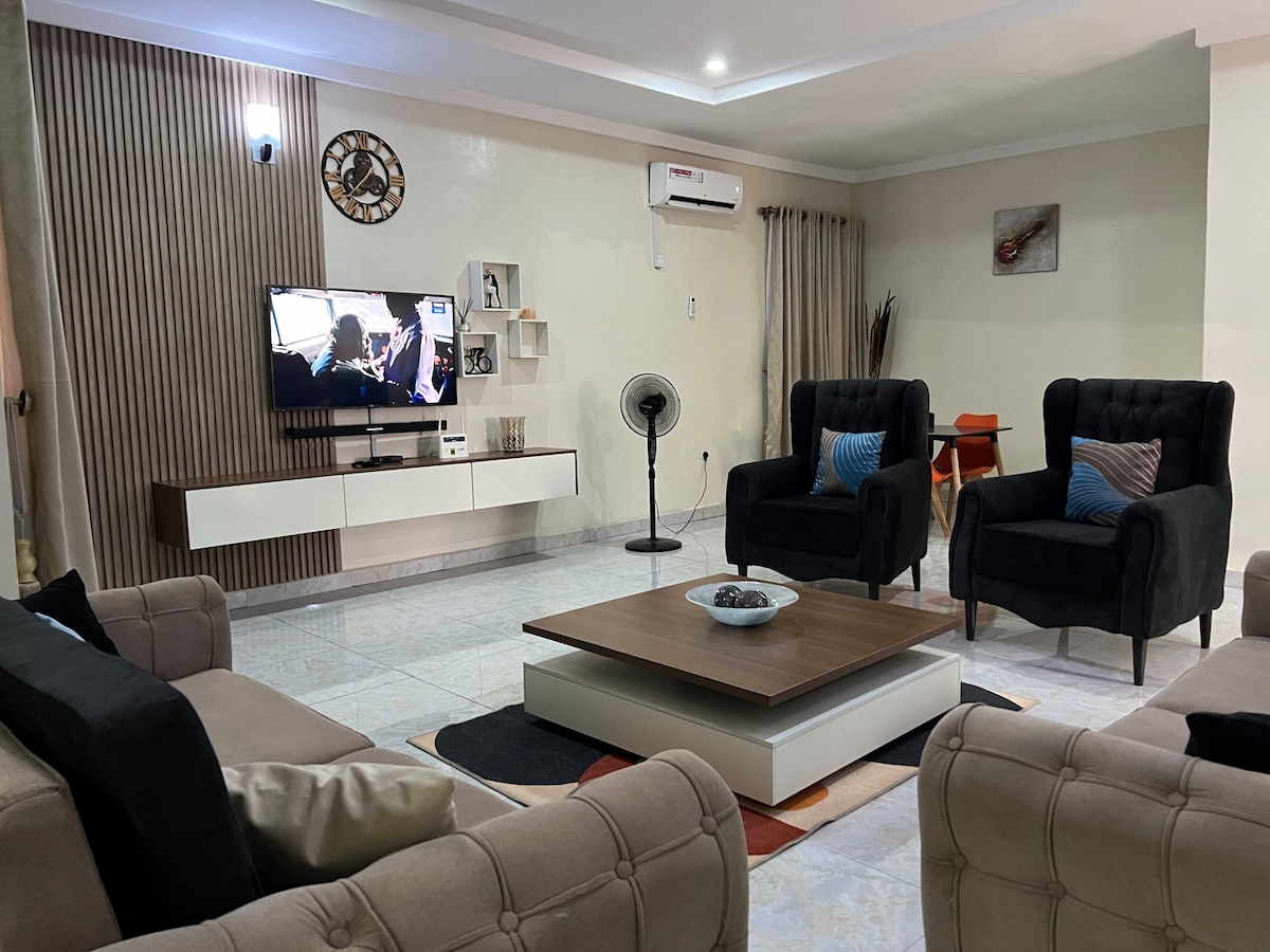 Tenk deg å gå inn i en luksuriøs oase i hjertet av Abuja. Vårt fantastiske fristed med tre soverom i Wuye er det perfekte feriestedet for familier, venner og reisende som søker komfort, underholdning og ro. Når du går inn, blir du møtt av den romslige, rolige stuen, perfekt for avslapning og kvalitetstid med kjære. Men ikke la deg lure - tilfluktsstedet vårt er også et underholdningsparadis! Vi har tenkt på alt for å gjøre oppholdet ditt uforglemmelig. Bestill oppholdet ditt hos oss!