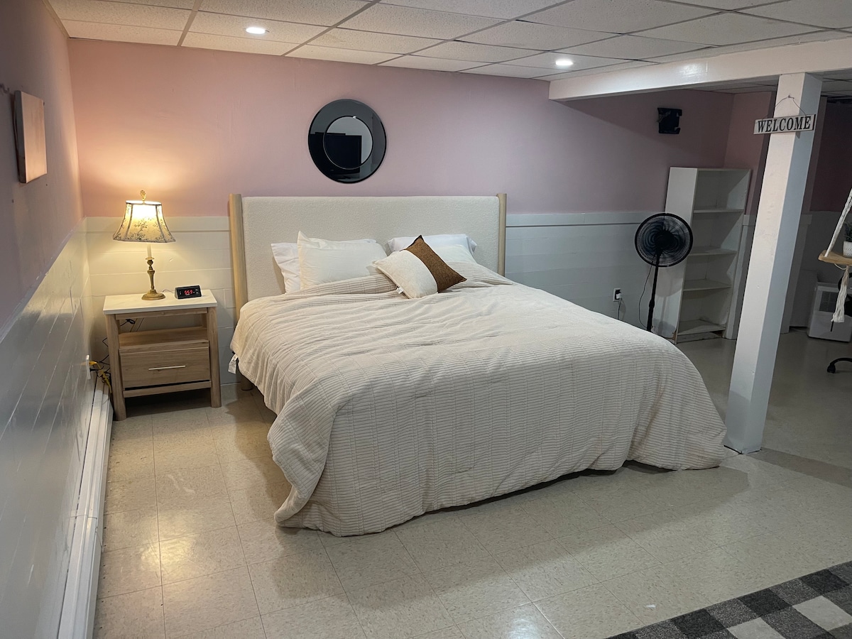 Located on the lower level of our home, you will find a spacious suite complete w/living room w/pullout couch, kitchenette w/lots of seating, mini fridge, microwave, dishwasher,2 TV’s,full bath, and a private bedroom with a full bed. Sliders access the private backyard overlooking the lake (fishing galore). We also have a pool table for your enjoyment. located near Nashua, NH home of “The Nash” casino, & Lowell, MA near UMass Lowell. 40 mins to Boston.