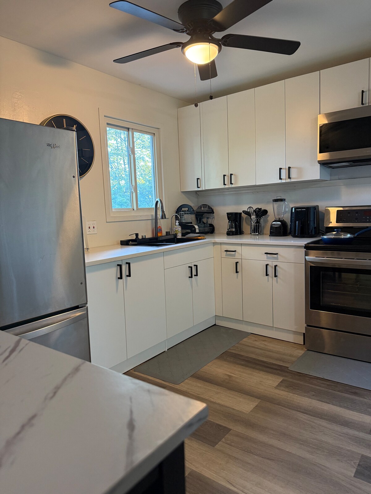 Velkommen til ditt perfekte hjem hjemmefra! Nyt en romslig og nyrenovert kjellersuite med vinduer og egen inngang i et privat hus, perfekt for opptil fire gjester. Perfekt for par, små familier eller forretningsreisende. Dette koselige tilfluktsstedet kombinerer privatliv og komfort i et rolig nabolag. Enten du er her for en kort tur eller et lengre opphold, tilbyr denne leiligheten alt du trenger for en komfortabel og avslappende opplevelse. Bestill nå og begynn å planlegge besøket ditt.