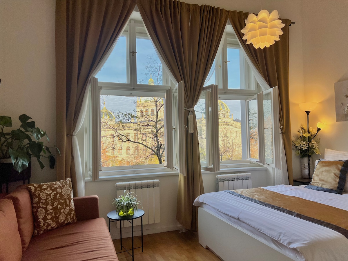 Høydepunktene i leiligheten er en komfortabel seng med ergonomiske puter, dyne for sommer og vinter, dekket med satengsengetøy som gir deg en avslappende søvn, slik at du kan våkne opp full av energi for å nyte dagen. Leiligheten har den beste utsikten over Nationalmuseet, den gamle og nye bygningen, Nationaloperaen, hovedtogstasjonen og andre attraksjoner du kan nyte fra vinduet.