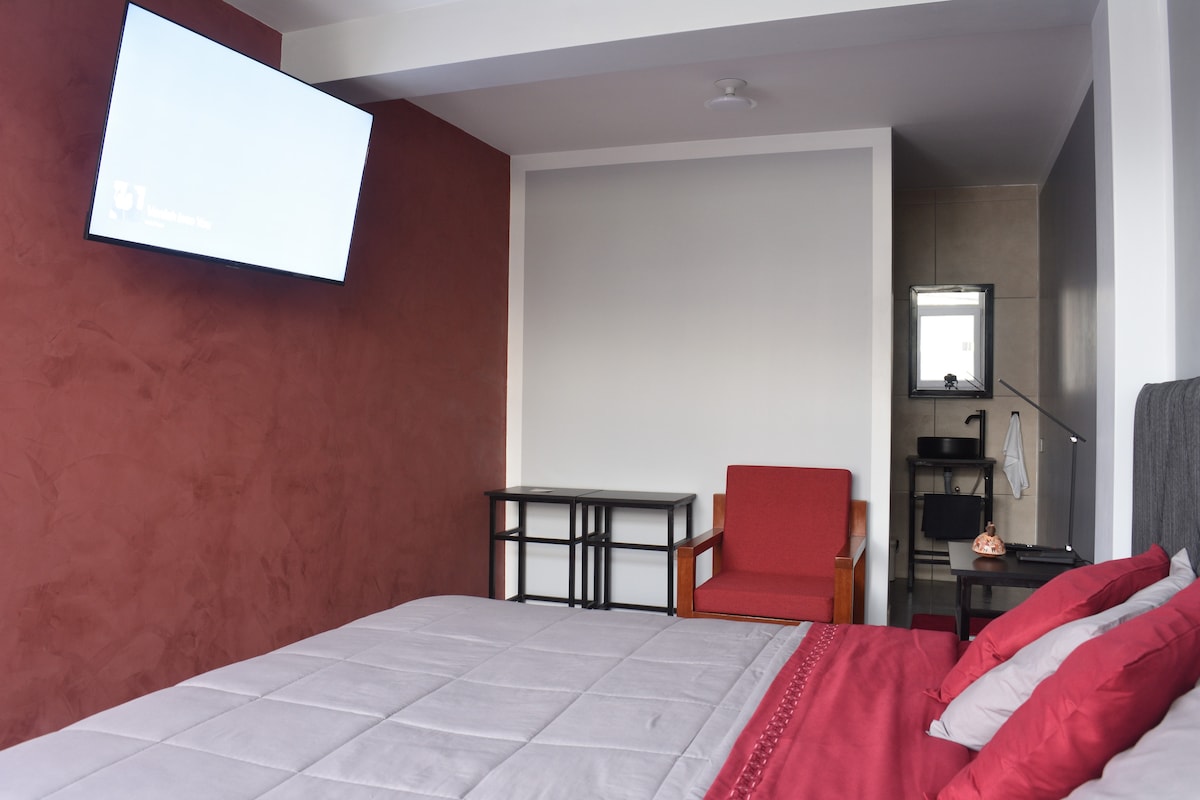Apartamento privado - Ideal para parejas, hay 2 sofás camas que pueden albergar otras 2 personas, además tiene: Cocina equipada, filtro de agua, baño privado, agua caliente, cama king size (3 plazas) tv, wifi, 2 sofás camas, ventilador de techo, lavandería, parking (cochera). con ambiente externo extra como sala y comedor, además cuenta con servicio de guarda equipajes gratis.
