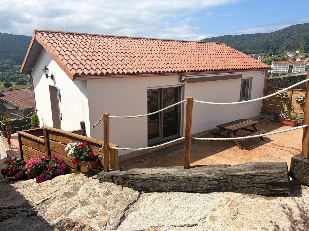 Helt hus med det beste fra en landlig omgivelse og bare 1 km fra stranden. Huset vårt er nylig renovert, og har alle fasilitetene til et moderne hjem, men med sjarmen til et typisk galisisk landsted. Eiendommen har en stor privat gårdsplass, som har en grill utstyrt med alt for å tilberede en god grill, og et boblebad med utsikt over havet. Tre soverom med senger på 180 cm i bredden, og eget bad. Registrering VUT-CO-002303.