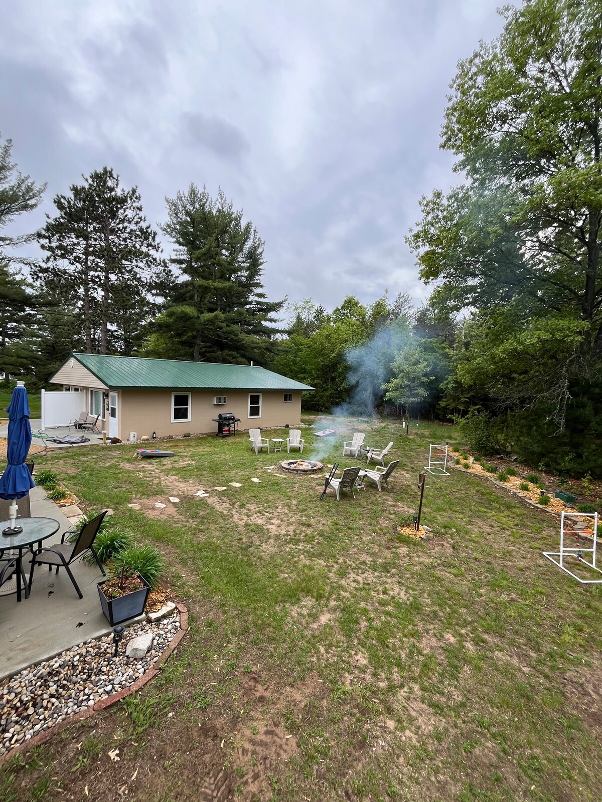 2,5 hektar med tårnhøye furutrær med båtplass, luksuriøs paviljong og en utendørs bålplass. Alt ligger på en hjørnetomt som er omgitt på to sider av statlig eiendom. Dette spesialbygde hjemmet er en del av Mays Point-utviklingen, som ligger på nordvestsiden av Castle Rock Lake. Mindre enn fem minutters gange (1/4! mile) til innsjøen. Hjemmet er perfekt for flere familiesammenkomster – to separate kjøkkenområder, flere futoner. Raskt trådløst nettverk og et eget arbeidsområde.