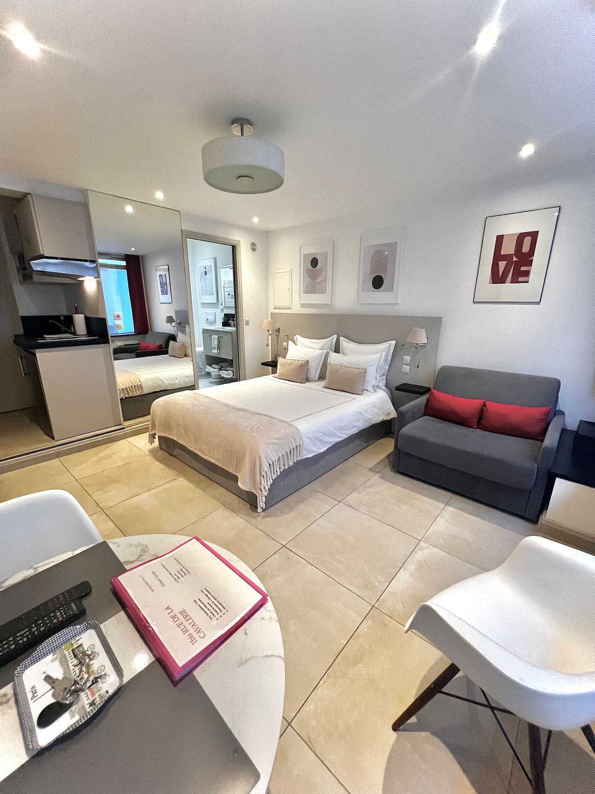 Stor studioleilighet, som en suite, ideelt plassert i en rolig gate, nær Eiffeltårnet og to minutter fra T-banestasjonen La Motte Piquet Grenelle. Mange restauranter i nærheten også! Leiligheten er fullt utstyrt med alt du trenger for noen dager (såpe, sjampo, hårføner, toalettpapir osv.). Perfekt for et par med hovedrommet som er ganske romslig, og praktisk for to personer som ønsker separate senger (sofaen blir omgjort til en enkeltseng), men plassen blir trangere.