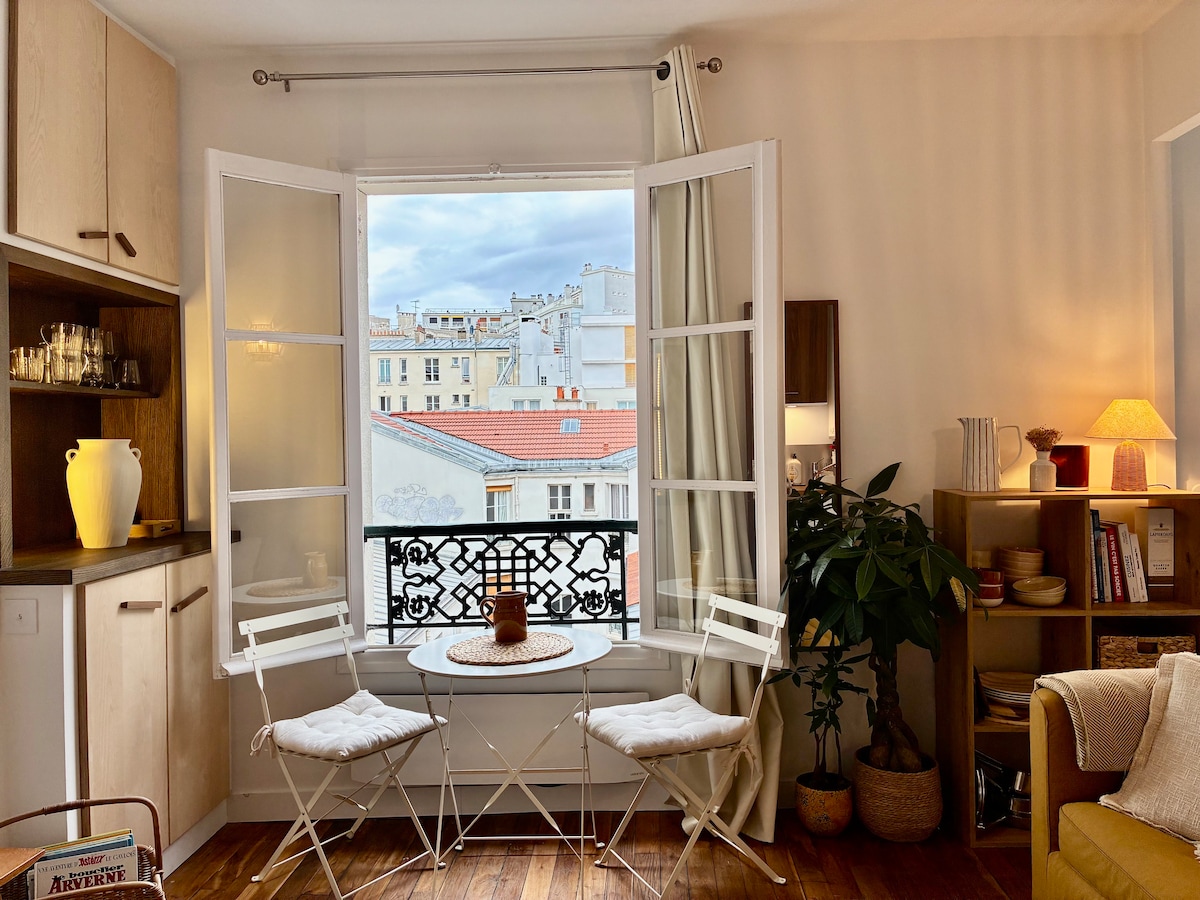 Top-floor haven with a large, sunlit balcony and an unobstructed Eiffel Tower view. Newly refurbished by a designer, it features an Italian shower, a comfy queen-size bed, and a quality sofa bed for groups of 3–4. Bright living/dining area, fast broadband and Netflix. Secure building in a vibrant neighborhood packed with cafés, restaurants, and shops. Metro station just 2 minutes’ walk. Perfect for couples, friends, or business stays.