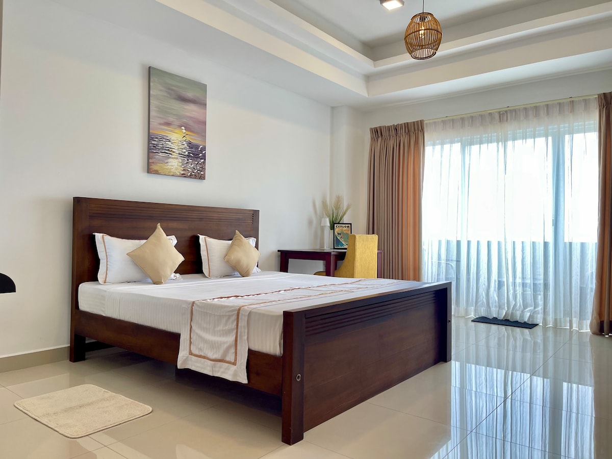 Velkommen til ditt fredelige feriested i Negombo – det perfekte oppholdet for strandelskere, gjester på gjennomreise til flyplassen, par, familier og digitale nomader. Ligger bare noen minutter fra de gylne strendene og kun 15 minutter fra Bandaranaike internasjonale lufthavn. ✨ Stedet ✔️ Romslig soverom med klimaanlegg ✔️ Komfortabelt oppholdsrom med moderne innredning ✔️ Fullt utstyrt kjøkken for hjemmelaget mat. ✔️ Rene, lyse bad ✔️ Privat balkong ✔️ Tilgang til svømmebasseng ✔️ Parkering uten ekstra kostnad.