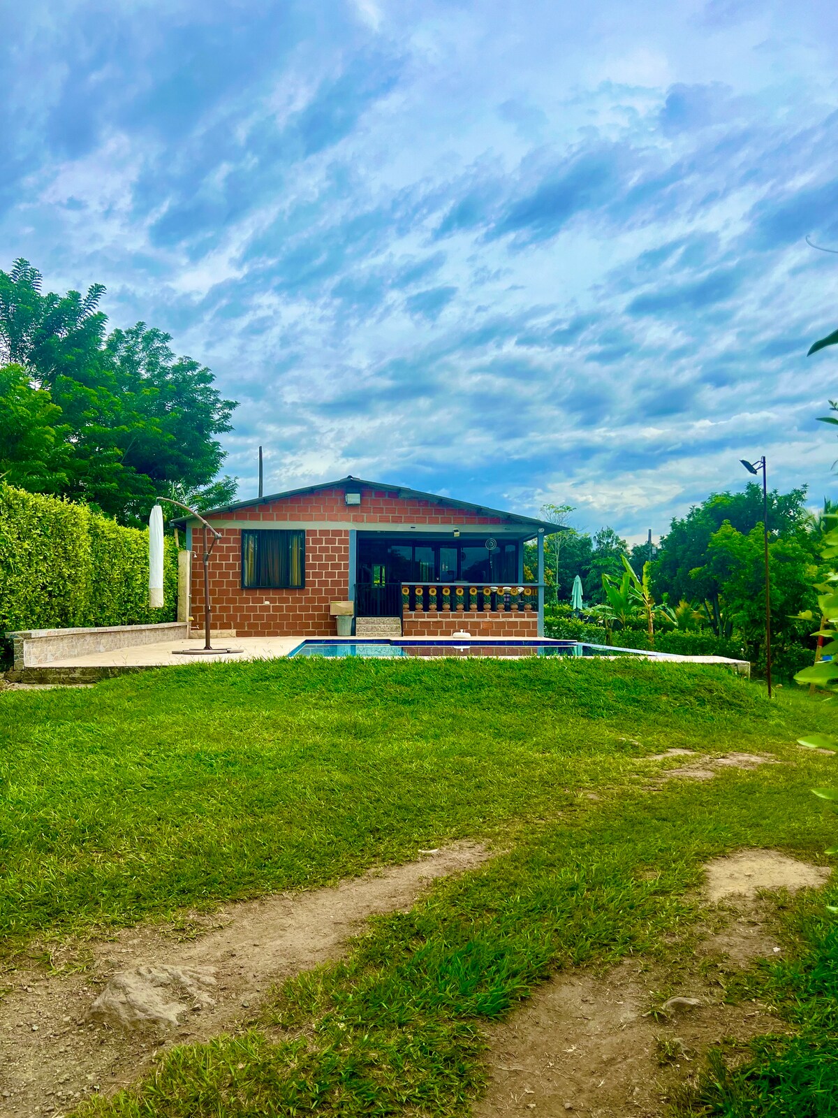 Gårdshus 200 m2 Moderne, lyst, nybygd, med garderober og bad på hvert rom, barnespill, dukkehus, stort kjøkken, klesområde, CCTV. hager, endeløst basseng, jacuzzi, totalt område 1300 m2, utmerket beliggenhet 1 time fra Manizales, 1 time fra Pereira og 2,5 timer fra Medellín, på stillehavsveien 3, varmt klima, naturlig elv, fotballbane. Moderne dekorasjon med alle redskaper, stor utendørs terrasse, grill, klimaanlegg, vifter
