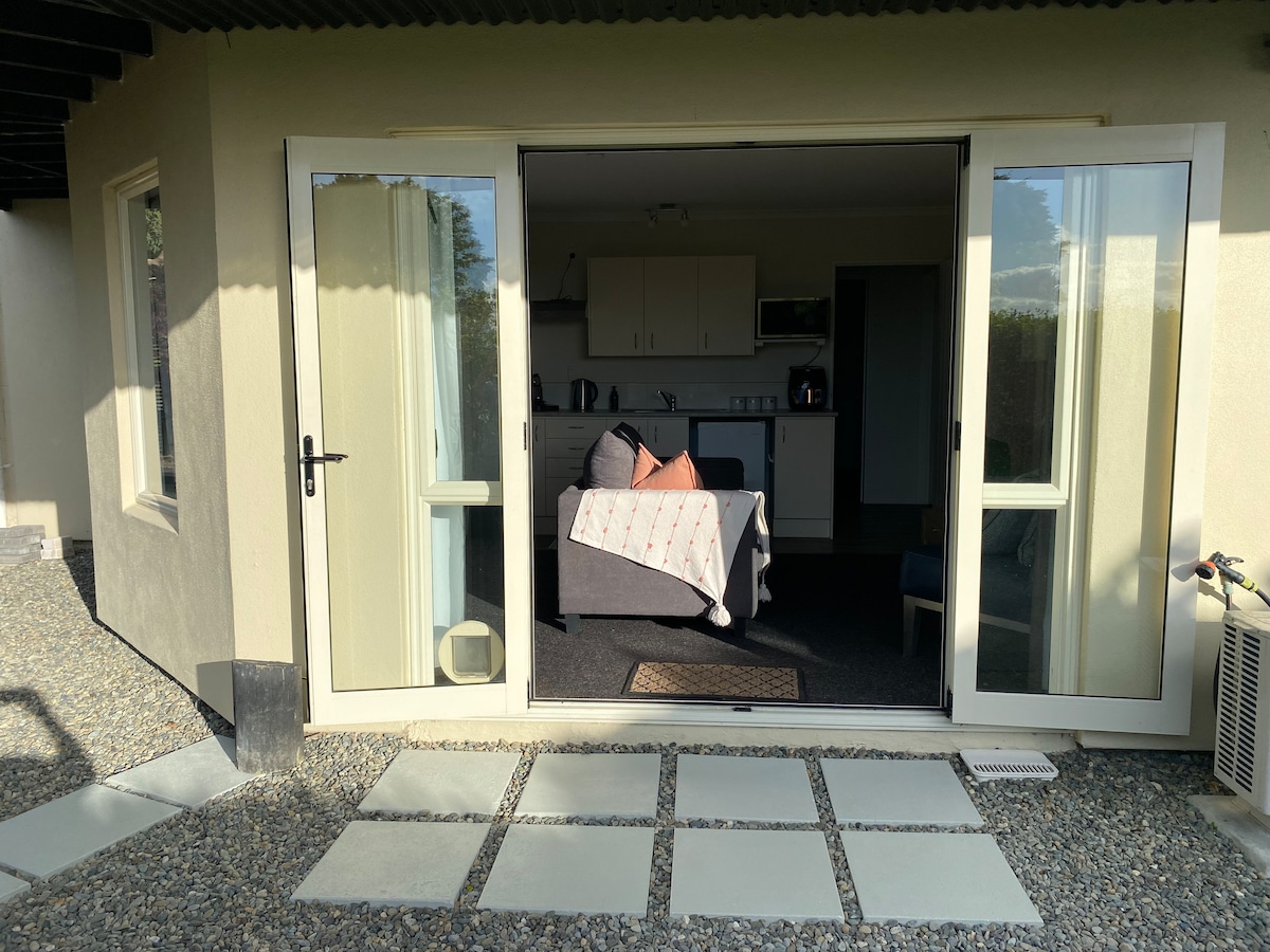 Moderne hybelleilighet med privat dekket dekk (ikke vanntett selv i kraftig regn) og feiende utsikt over Tasman Bay og nordover langs Boulder Bank. Leiligheten er perfekt for par, og har sengetøy av god kvalitet, et avslappende sitteområde, både på innsiden og på utsiden. Svært privat og rolig.