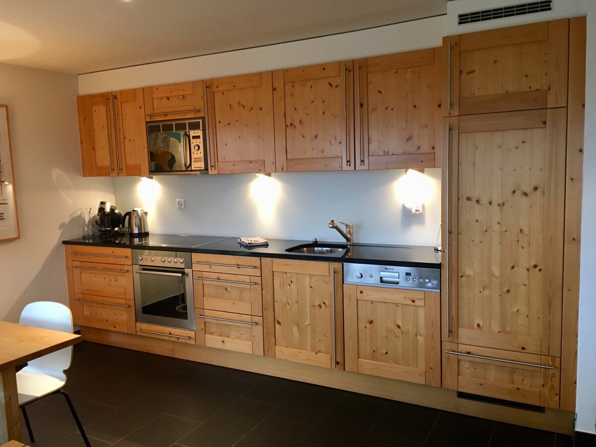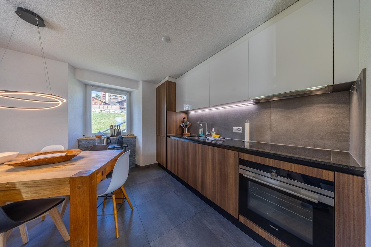 Boligen min ligger i nærheten av COOP og Migros supermarkeder, skøytebane, svømmebasseng, tennis, restauranter og sportsbutikker, 10 minutters gange fra avgang fra kabelbanen. Du vil sette pris på beliggenheten, utsikten, komforten, det moderne og velutstyrte kjøkkenet, lyset, solen, roen, samtidig som du er godt sentrert. Det er perfekt for to personer eller en familie. Fleksible ankomst- og avreisetider hvis leilighetens belegg tillater det, ellers se vanlige betingelser