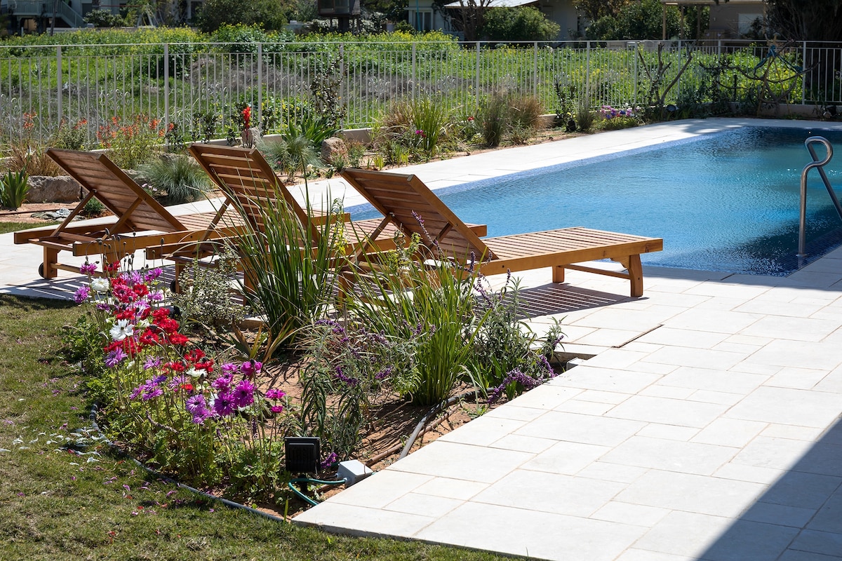 • Villa Mia er det ideelle stedet for ferie og arbeid i et rolig og privat miljø. • En egen boenhet på 50 kvadratmeter med egen inngang på en tomt på 1,5 dunam og en hage over en dunam. • Privat stort basseng 13,5 x 6 meter kun for gjestene våre. • Hagen er gjerdet med en svært høy hekk som gir maksimalt privatliv • Den omfatter ett soverom med en dobbeltseng, en stue med en dobbel uttrekkssofa seng, flatskjerm-kabel-TV, A/C og gratis WIFI + NETFLIX, ett bad og et helskjerm-bad utstyrt kjøkken. Urn og sabbat kokeplate for våre religiøse gjester. • Vila Mia er perfekt for en avslappende ferie i det uforglemmelige området i Cæsarea, et av Israels berømte og gamle steder, et fantastisk arkeologisk og turistmessig sted, perfekt plassert mellom Tel Aviv (30 minutters kjøretur) og Haifa (30 minutters kjøretur) kjøre). Derfra kan du også turnere nord i Israel. Galileasjøen er ca. 90 to minutters kjøretur unna. • Det finnes mange attraksjoner i området: inkludert parken, hvor du kan nyte en spasertur. blant ruinene i den gamle havnebyen Cæsarea , spis på en gourmetrestaurant med utsikt over havet, besøk Rally-museet, øv på dine golf- eller tennisferdigheter eller nyt vannsport eller rideaktiviteter på stranden. I nærheten finnes kunstgallerier, kaféer, shopping og kommersielle områder, familiesport og attraksjoner osv. • For dem som kommer med bil, er det rikelig med gratis parkering tilgjengelig i gaten. • Vi ser frem til å ønske deg velkommen på din neste ferie. Ta gjerne kontakt med oss med eventuelle spørsmål du måtte ha. Joseph
