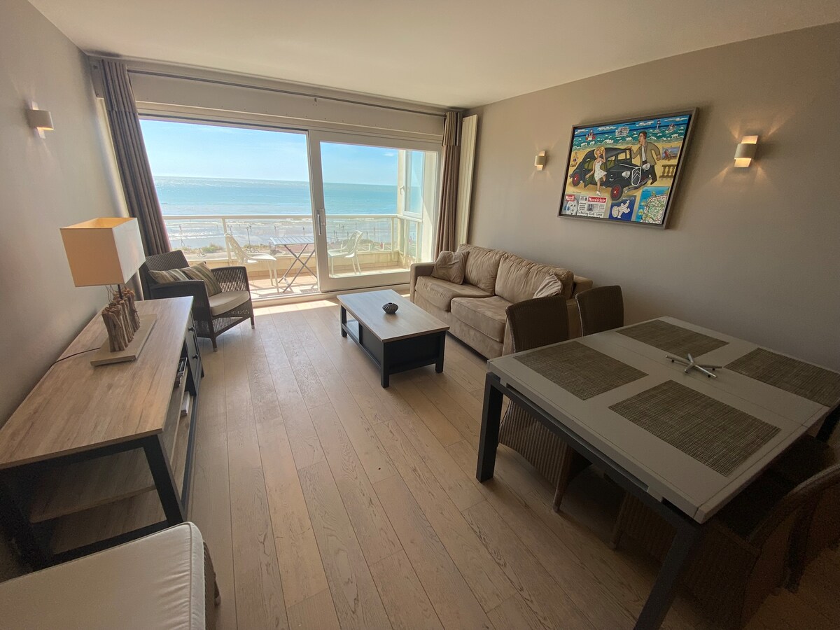 Kom og slapp av og beundre solnedgangen i denne leiligheten som ligger ideelt plassert mot sjøen på den fotgjenger-dykkede demningen. En trapp foran boligen vil tillate deg å gå direkte ned til stranden. Leiligheten har 2 balkonger (østlig eksponering for soverommet og vestlig for stuen), du kan slappe av og beundre havet og nyte roen. Gratis parkering (privat plass). Sengen er redd ved ankomst (for 2 personer) Gratis Wi-Fi